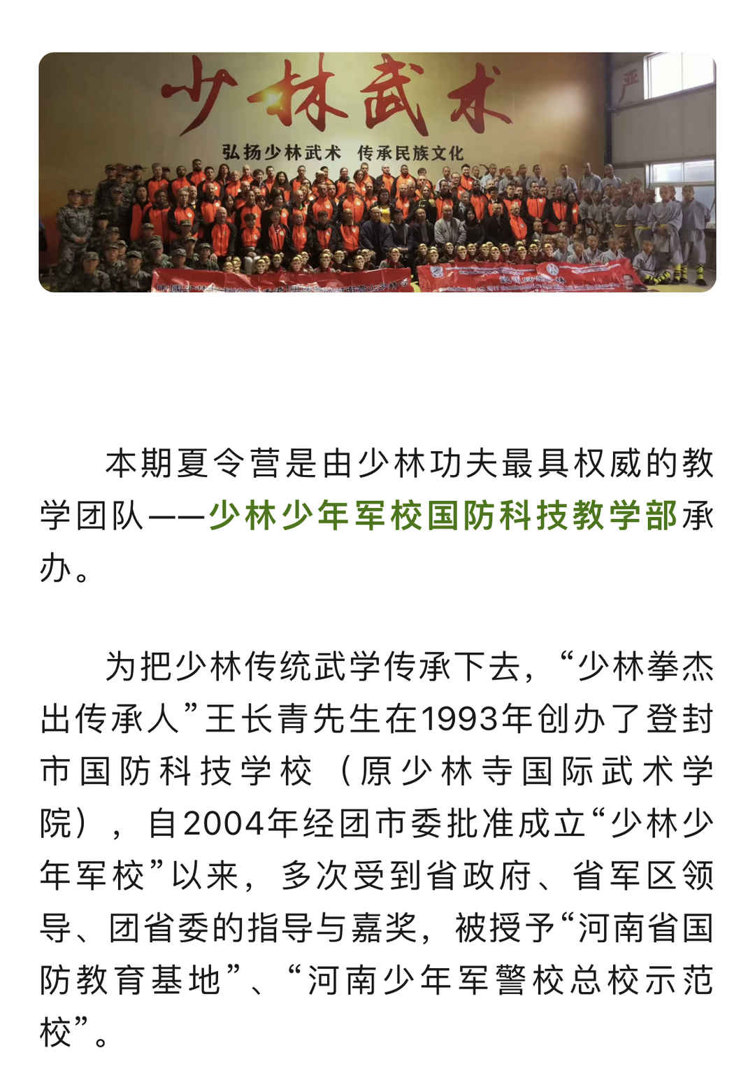 ≤研学路线≥ 五天四晚研学夏利营,主题:功夫少年