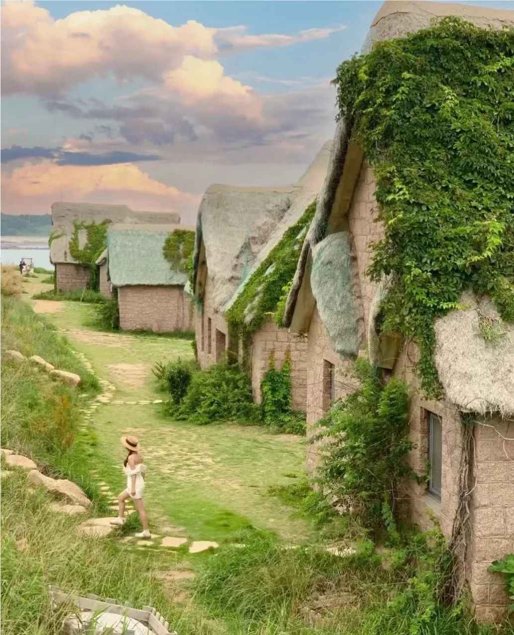 金石湾艺术园区位于中国的最东端——威海荣成,这里坐落于蓝天大海绿地之间,当太阳直射时,总有一种不真实的虚幻感。这里有仿佛童话中的草房子,是一个拍照度假的好去处。