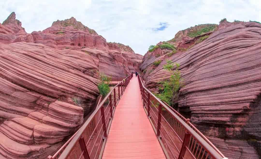 位于陕西省榆林市靖边县城龙洲镇境内,景区与甘肃、内蒙、宁夏、山西四省接壤。这里的沙丘不断浸渍地下水,一层层沉积下来,凝结成砂岩,又经地壳运动、流水与风力的自然雕琢,形成了各类线谷、巷谷、赤壁等奇特的丹霞地貌景观。
