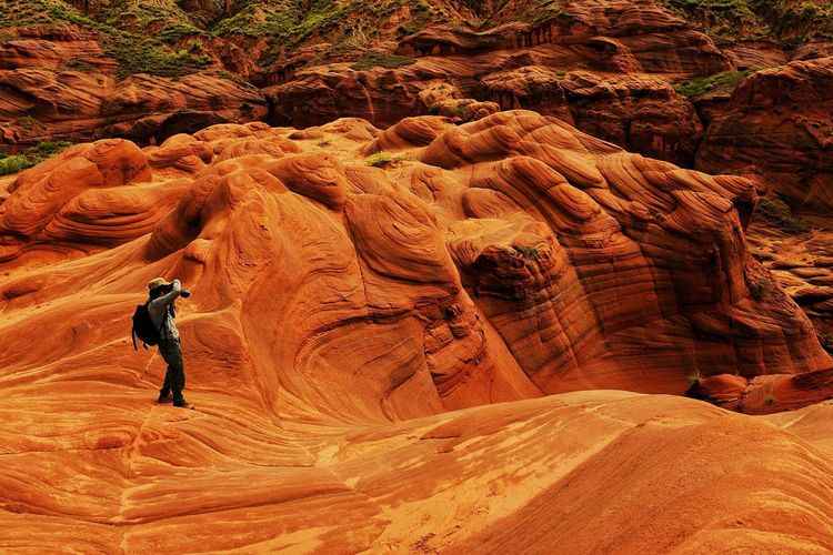 靖边波浪谷岩石叫红砂岩,学术上被称为"砒砂岩",成于古生代二叠纪和中生代三叠纪、侏罗纪、白垩纪之间。这是地球历史中地质最活跃、生物最繁茂、动物最庞大的时代。
