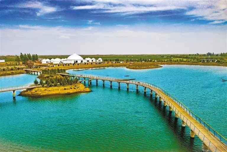 红碱淖风景区地处鄂尔多斯草原与毛乌素沙漠的交汇处,水域面积54平方公里,是陕西省最大的内陆淡水湖,素有“大漠明珠”之美称。