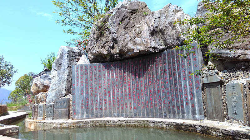 穿过石牌坊,走上数十步石阶,跨入徽州古民居的门楼,映入眼帘的屏风上刻着《桃花源记》全文。