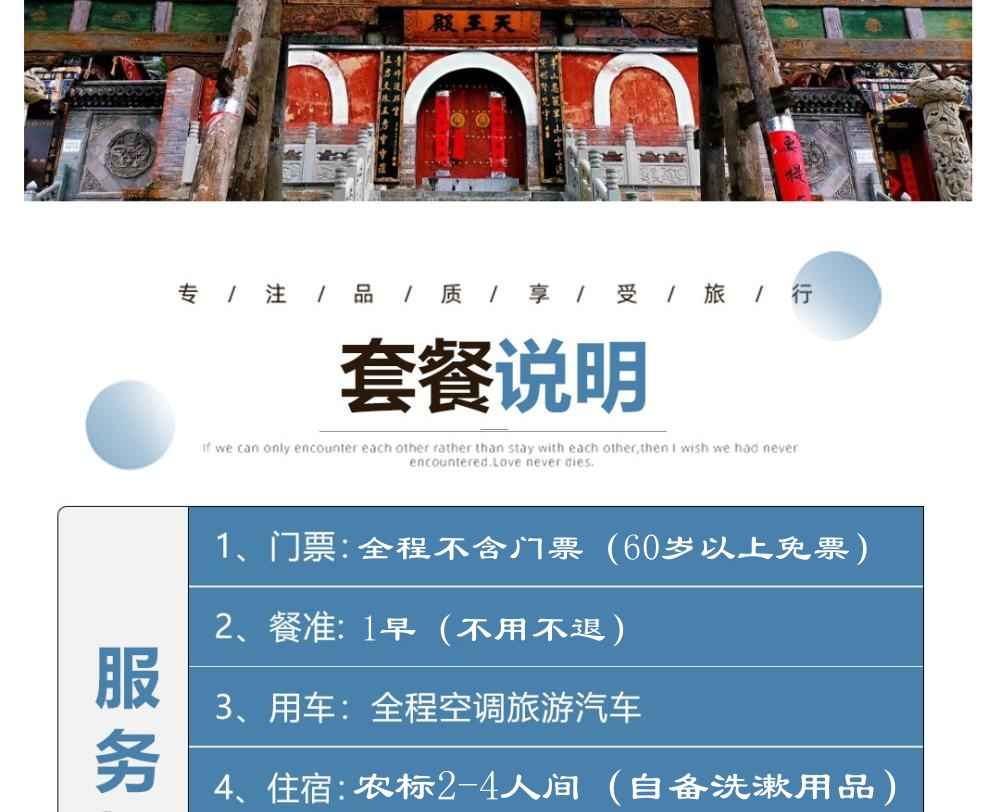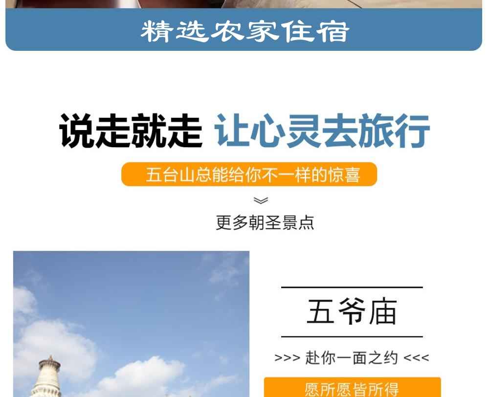 4请着运动休闲服装及鞋子;五台山早晚温度比较低,请多备一件外衣;