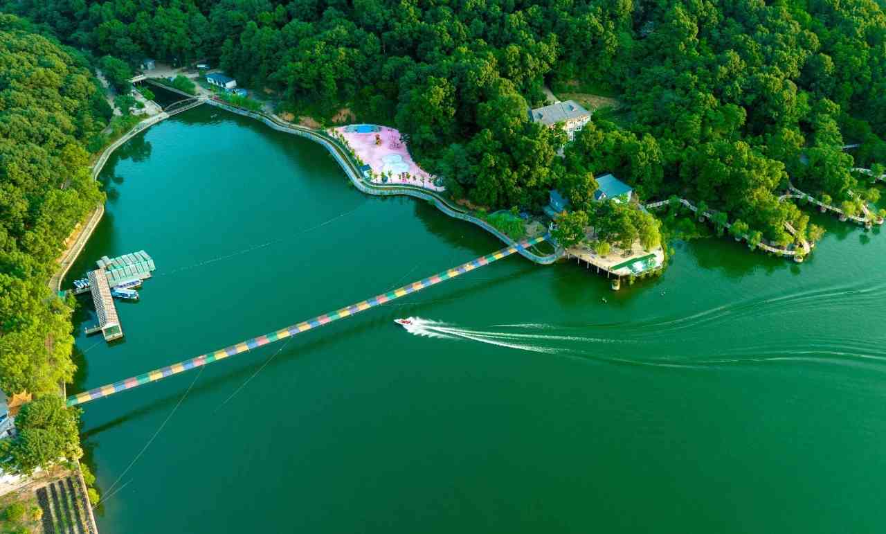 景区依山而建,临水而立,依偎市区,山、水、林、城浑然一体,湖光山色、美不胜收。亲身体验【水上竹筏】、【中原第一桥】(中原最长的5D声光电玻璃桥),漫步于惊险刺激的水上吊桥,颤颤悠悠,飘飘欲仙;徜徉于【中原最美的水上古栈道】尽情感受携山踏浪之豪迈;【竹筏游】【龙舟竞渡】【大型歌舞演出】【千人篝火晚会】登娱乐项目,其乐无穷。每年的清明节、槐花节、端午龙舟赛、啤酒龙虾节、中秋水灯节等节日吸引了大批国内外游客来此观光旅游。