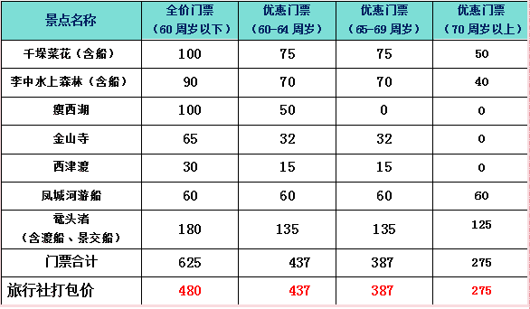 8、门票:不含门票及景交。请各位老年朋友统一在专列上凭借本人身份证上的实际年龄把对应的门票费用交给全陪导游,此全价门票为旅行社打包价不拆分(不去不退),赠送项目不去不退门票,行程中游客中途退团不退费!景点价格附