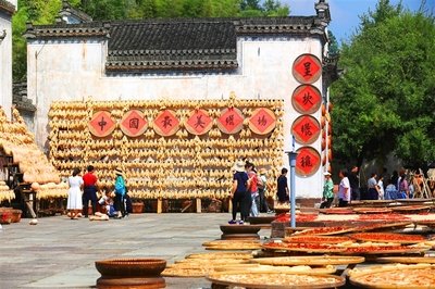 游览【塔川秋色】(观景台观看,不进村)秋色塔川属于黟县宏村镇的塔川村,又名塔上。它位于黟县桃花源著名旅游景点--宏村到木坑竹海景点途中,距宏村仅2公里,是黟县小桃源众多美丽富绕的自然村落中一个独具魅力的山间村落。 塔川,背倚高耸云端的黄山西南余脉黄堆山,遥对碧波荡漾的十里奇墅湖。粉墙黛瓦,飞檐翘角的二、三十幢古民居依山而建,层层迭迭,错落有致,远远望去,就好象一座巨型宝塔,藏身在山谷之间,掩映在浓荫丛中。