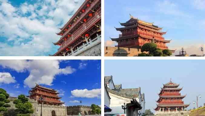 广济门城楼是一座宫殿式三层歇山顶阁楼,外城门原有“东为万春”门额。楼置于高大厚实的台基上,拱门中开,面阔七间,进深五间,前后面为木石柱相衔接支撑,并跨出城墙外,成为骑楼。