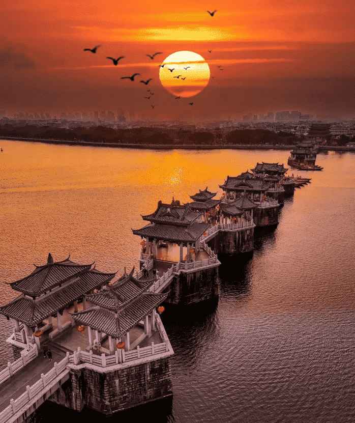 潮州广济桥,古称康济桥、丁侯桥、济川桥,俗称湘子桥,位于广东省潮州市古城东门外,横跨韩江,是潮州八景之一,中国四大古桥之一,国家AAAA级景区 ,被桥梁专家茅以升誉为“世界上最早的启闭式桥梁”。