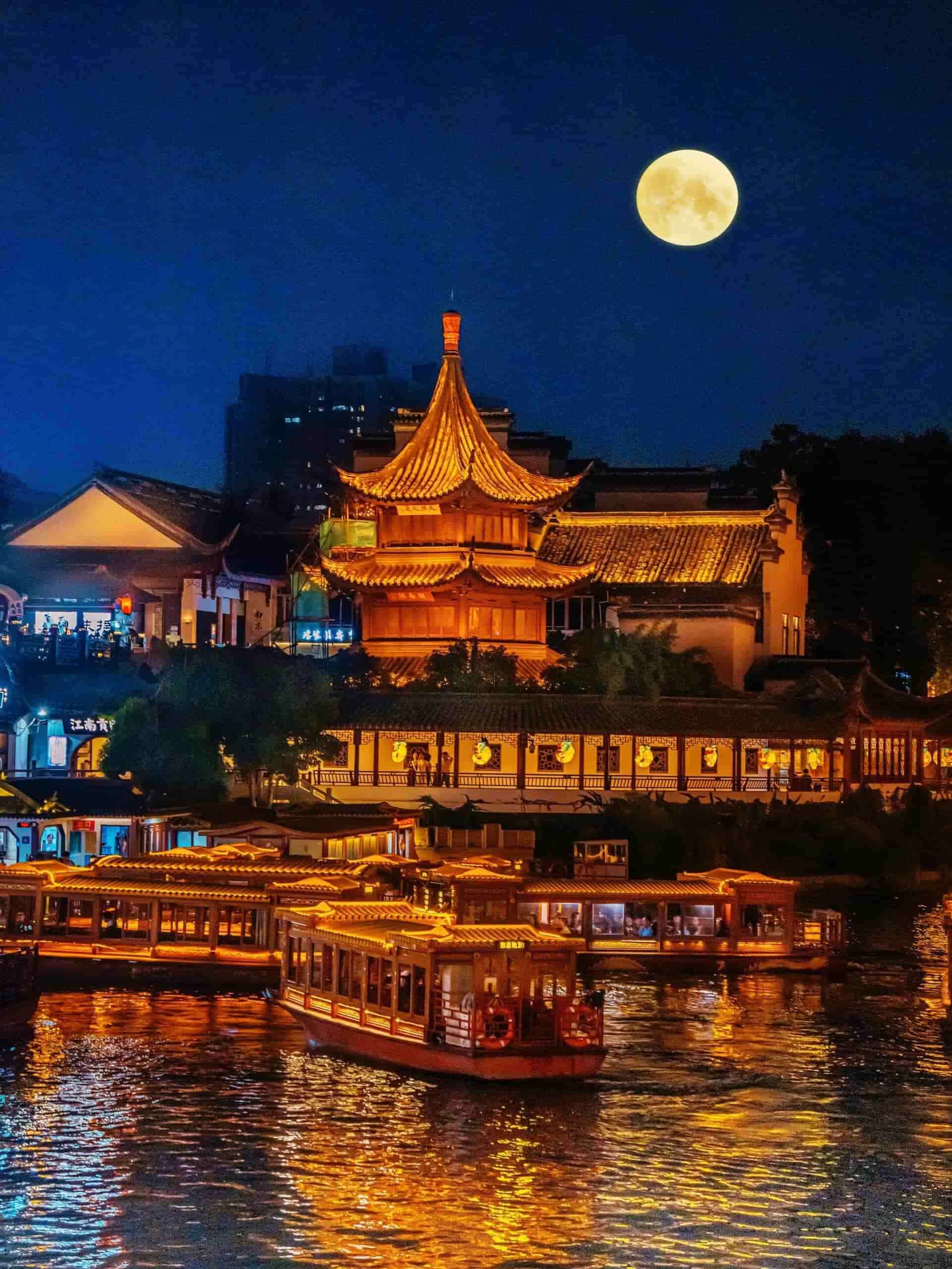 🎇秦淮河😍:南京的母亲河,夜晚的灯光超美的✨✨,画舫穿梭其中,简直是一幅流动的画卷🖼。