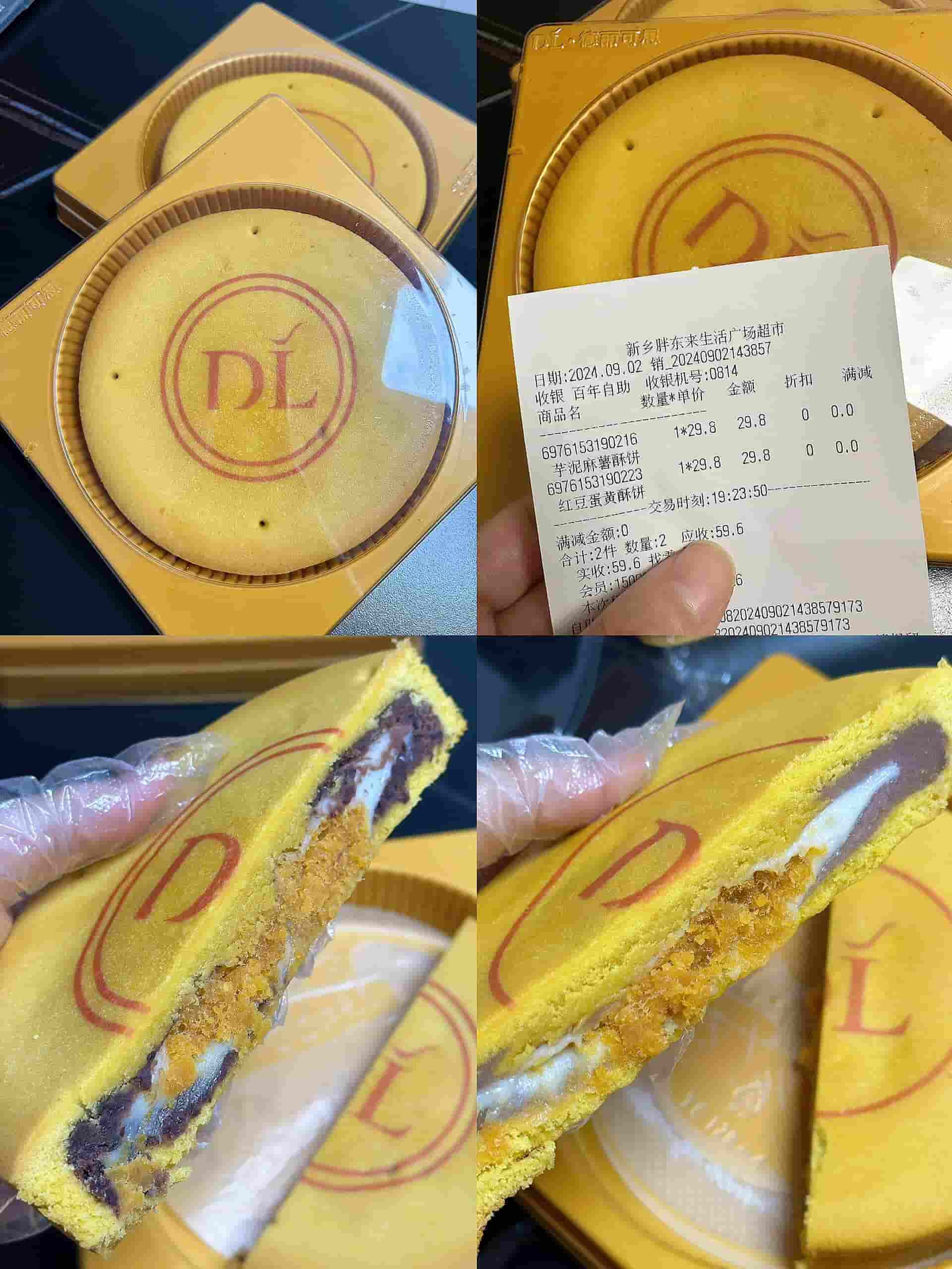 两个口味【红豆蛋黄酥]【芋泥麻薯酥]拿到手糯叽叽还能拉丝饼皮酥软 料还是很足的就是对我来说有点太甜啦