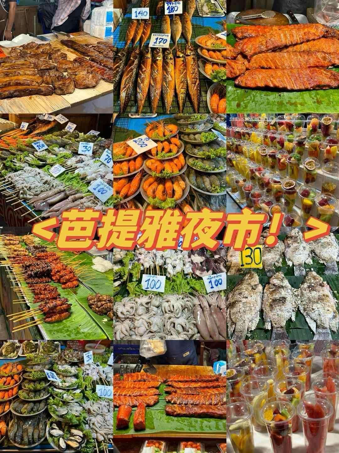 【芭堤雅夜市】(时间约60分钟)夜市是一个城市夜晚最明亮的地方,这里充斥着烟火气、食物的香气和人潮涌动的乐趣。各色各样的小摊、各色各样的话语。这里是芭堤雅最有人气的夜市,各种煎、炸、烧、烤、炒绝对是吃货的天堂,冰沙、冰淇淋、各种点心……相信没有哪一个可爱的女孩子能拒绝的!想要大吃特吃的男孩子们也可以大显身手一番,超级丰富。