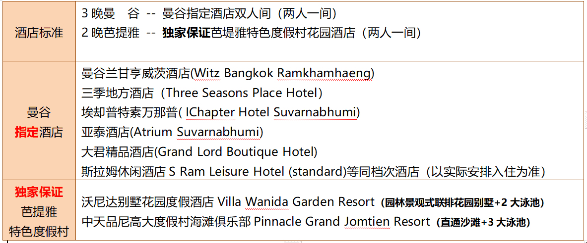 住宿:曼谷指定酒店