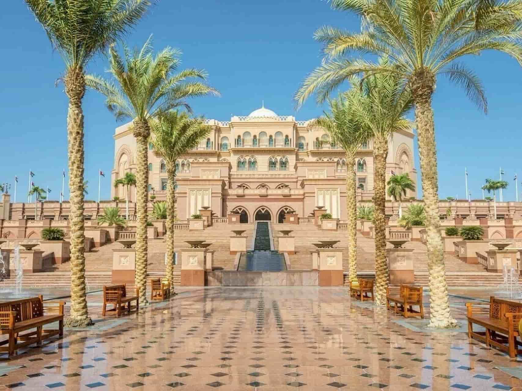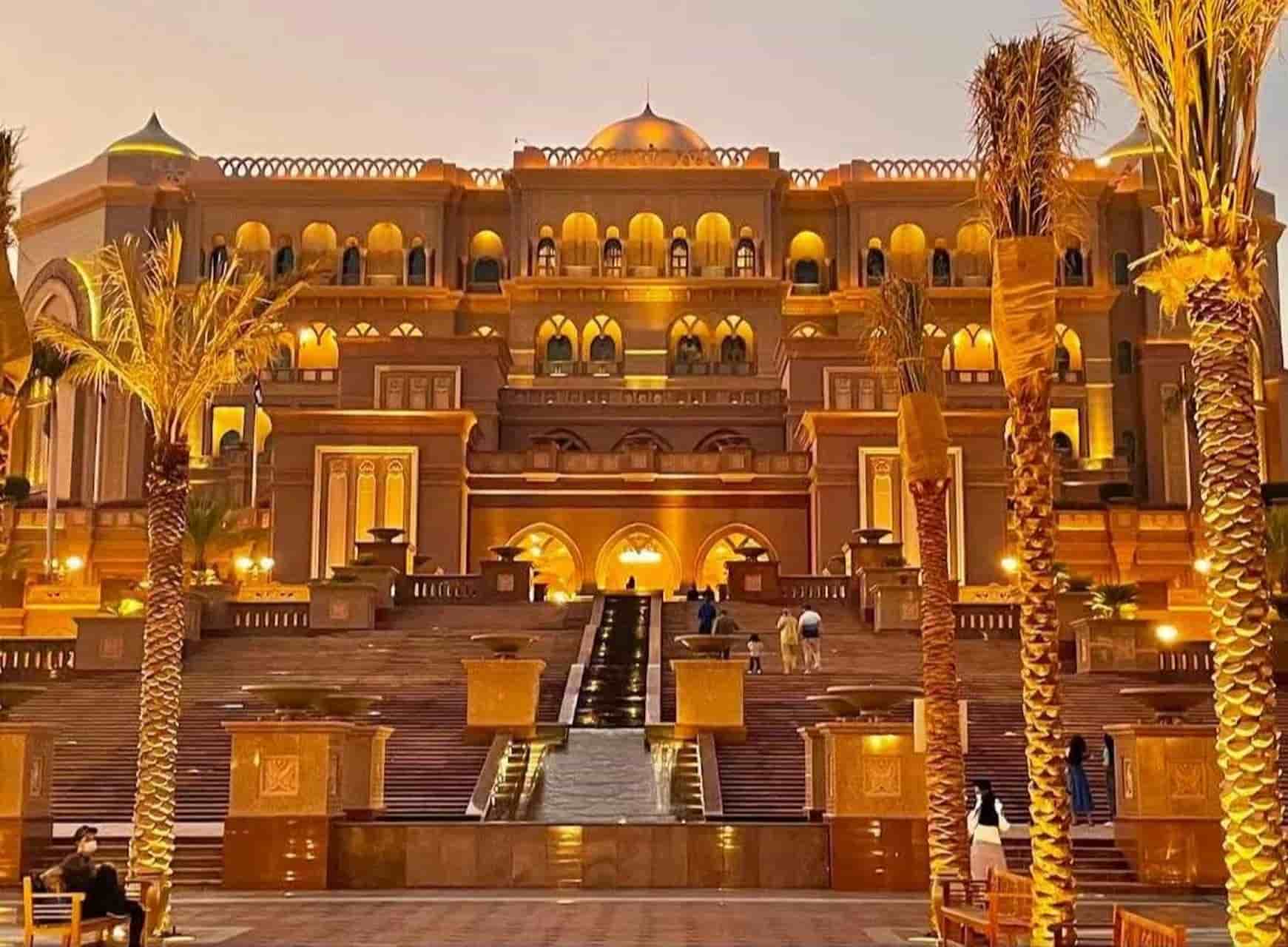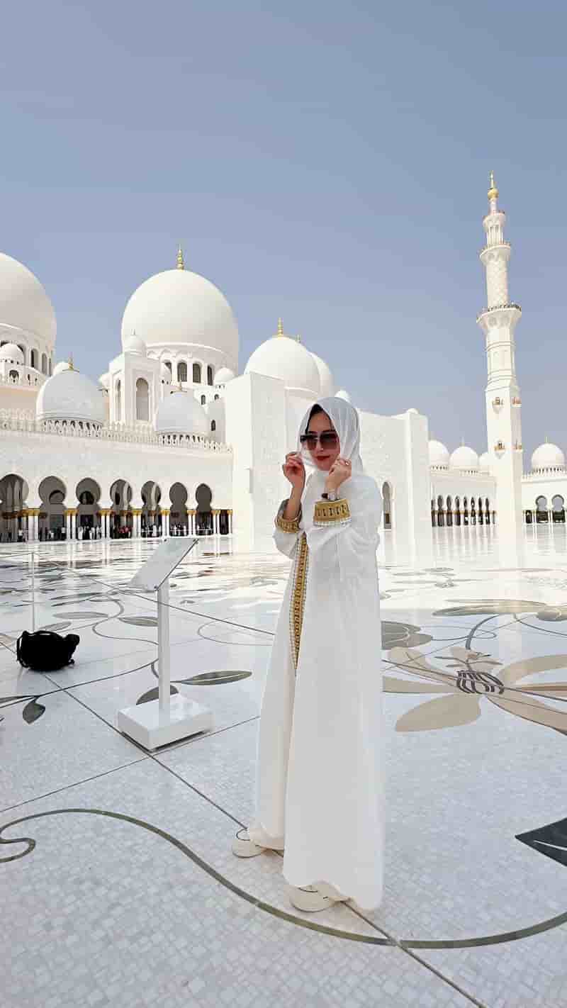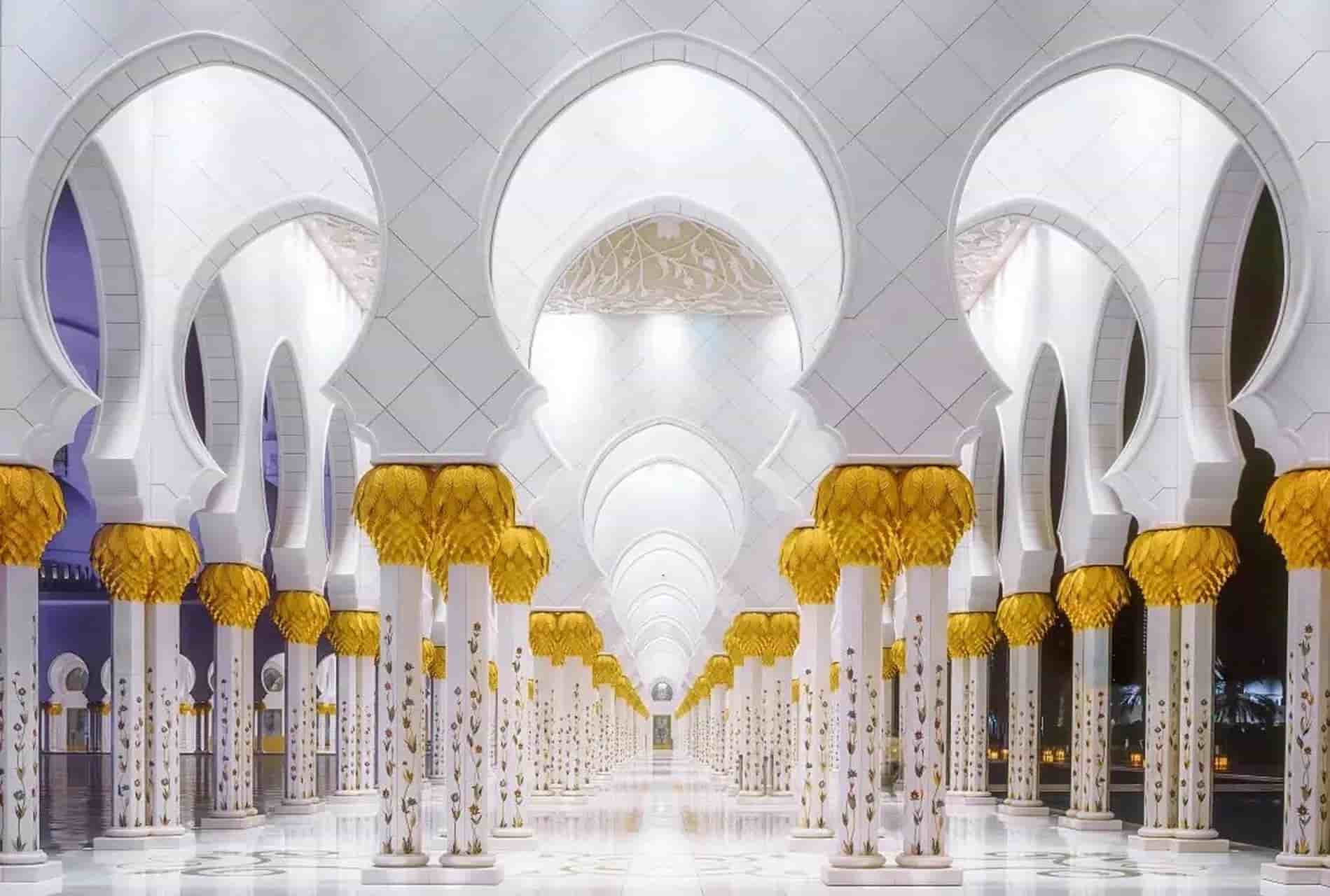 早餐后, 前往世界第三大/阿布扎比最大清真寺【扎耶德清真寺】(入内)该清真寺是为已故老国王扎伊德所建,内有以数以万计的宝石向前的水晶珠宝吊灯,【全世界最大手工地毯】,整个建筑群使用希腊的玉石包裹,白色典雅格外庄严肃穆(因开放与关闭时间比较特殊,若抵达时属关闭时间,则安排外观,约 20 分钟);