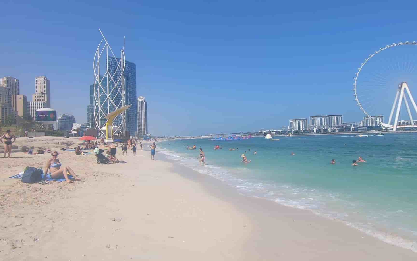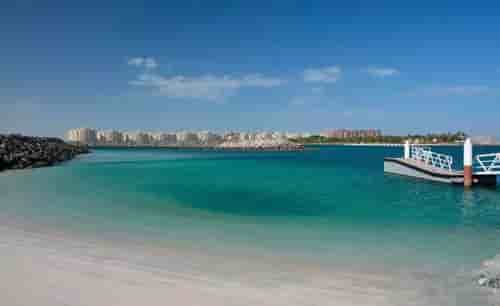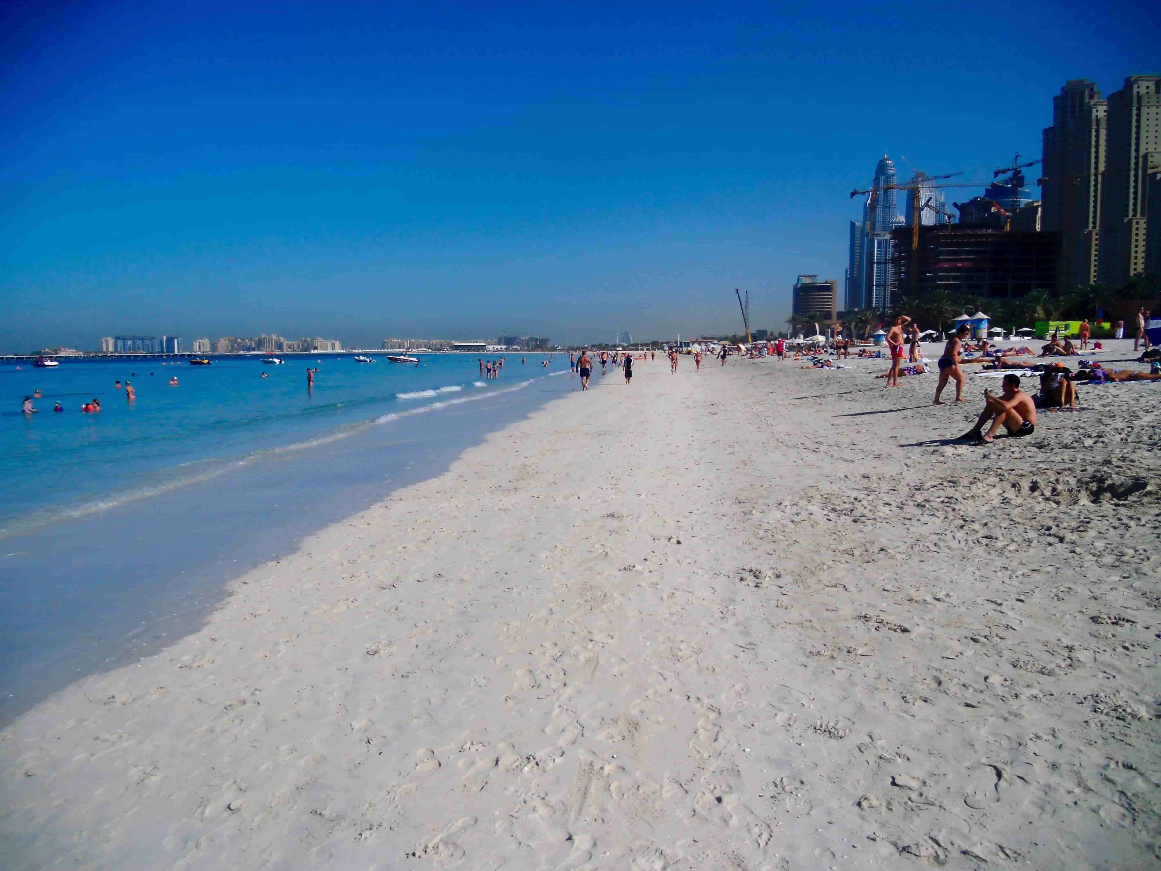 ▲ 【朱美拉海滨浴场】,前方是波斯湾湛蓝的海水,背靠一排豪华酒店。除了酒店私有沙滩,这里可以公开穿泳装,也是欣赏和拍摄帆船酒店的理想之地。