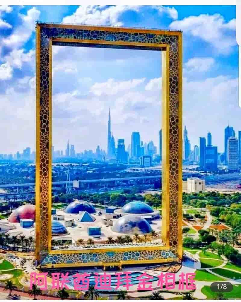 外观【迪拜新地标-金相框】,“金相框”的正式名称叫“迪拜之框”,始建于 2013 年,高度约 150 米,宽 93 米。最令人称奇的是其外表将全部贴金,总造价高达 1.6 亿迪拉姆(约合3 亿人民币)。建成之后,预计每年将吸引 200 万游客前来。