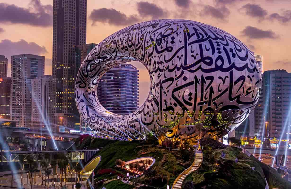 ▲ 外观【迪拜未来博物馆】- 2035 年的世界是什么样子的?未来博物馆告诉你答案。未来博物馆利用虚拟现实和增强现实、大数据分析、人工智能和人机交互等领域的最新技术,解答了许多与人类、城市、社会和地球生命的未来有关的问题,所展示的科技都是基于全球数年的研究和实验。馆内拥有不同功能的空间,人们可以体验艺术展览、沉浸式剧场、互动讲座和主题景点观赏。(外观普通开放区域,约 20 分钟,如遇特殊原因无法参观敬请谅解)