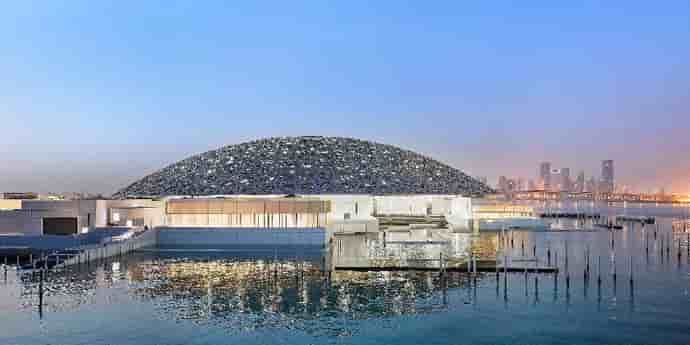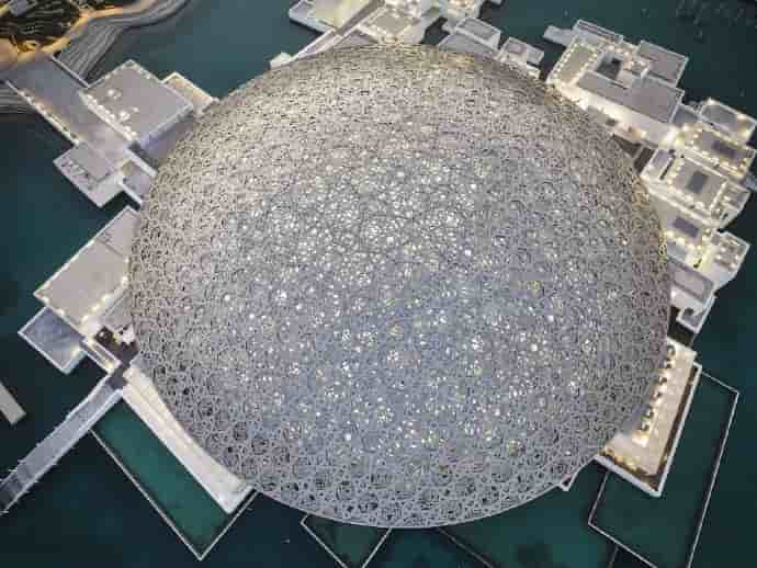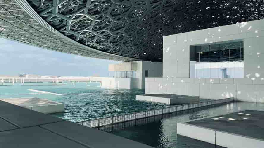 前往【萨迪亚特岛 Saadiyat Island】,我们将安排您参观【卢浮宫】(入内参观约 50 分钟),卢浮宫博物馆城犹如一个传统的阿拉伯麦地那,您可以在穹顶下的步道上漫步并俯瞰大海,直径 180 米的巨大穹顶由近 8000 个独特的金属星星构成,这些星星组成复杂的几何图形,当阳光透过穹顶射下来时,穹顶下会呈现出富有动感的光之雨,令人联想起阿联酋绿洲上婆娑重叠的棕榈树。在这里光影与文化艺术珍品的穿梭下,它可以令人们了解到相应的国家、历史和地理环境,但又不只是平庸地诠释了人类文化发展的进程。