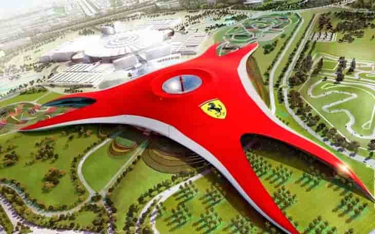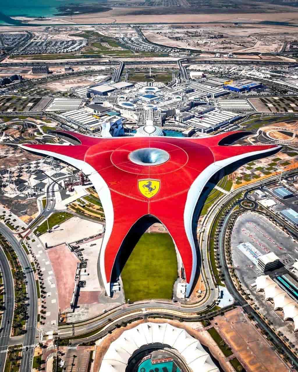 途经车览全球唯一一家【法拉利主题公园】和目前世界最大的【亚斯水世界】,法拉利主题公园从空中俯瞰如同外星飞碟,其红色顶棚上面印有硕大的法拉利 LOGO,这里几乎是整个法拉利总部—马拉内罗的再现。外观车览亚斯水世界占地近 15 个足球场大小,已于 2013年 1 月 24 日开放啦!它以“消失的珍珠”为主题,让您追随一位阿联酋小女孩的足迹,寻找传说中的珍珠;
