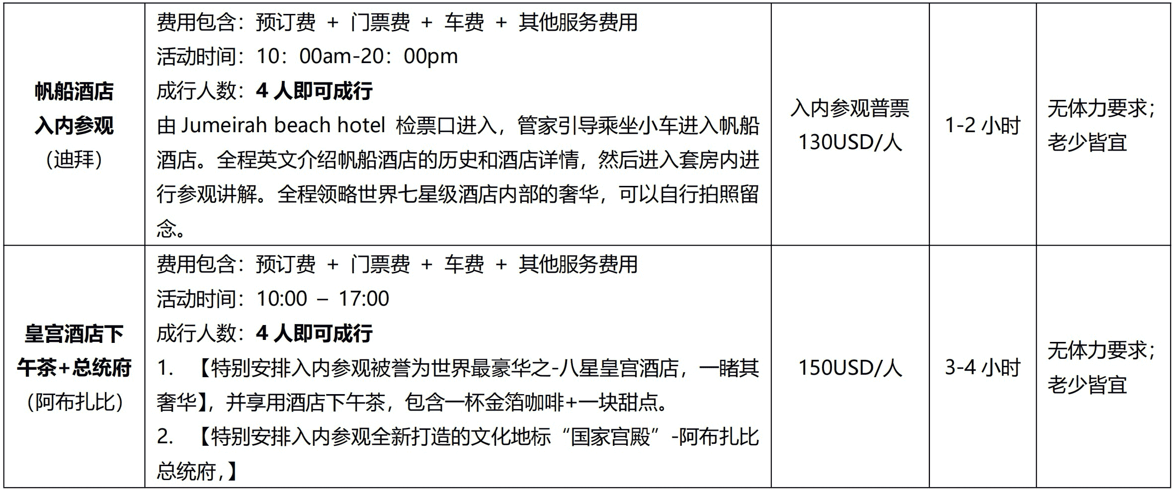 2. 全程阿联酋 4 星级酒店,双人间(如遇展会或者大型节日行程内标准酒店将替换成同级酒店) 【散客拼团,凡单人或单数(如三人)报名,按拼房处理,若不能拼房则需补单房差!请报名时提前确认!】
