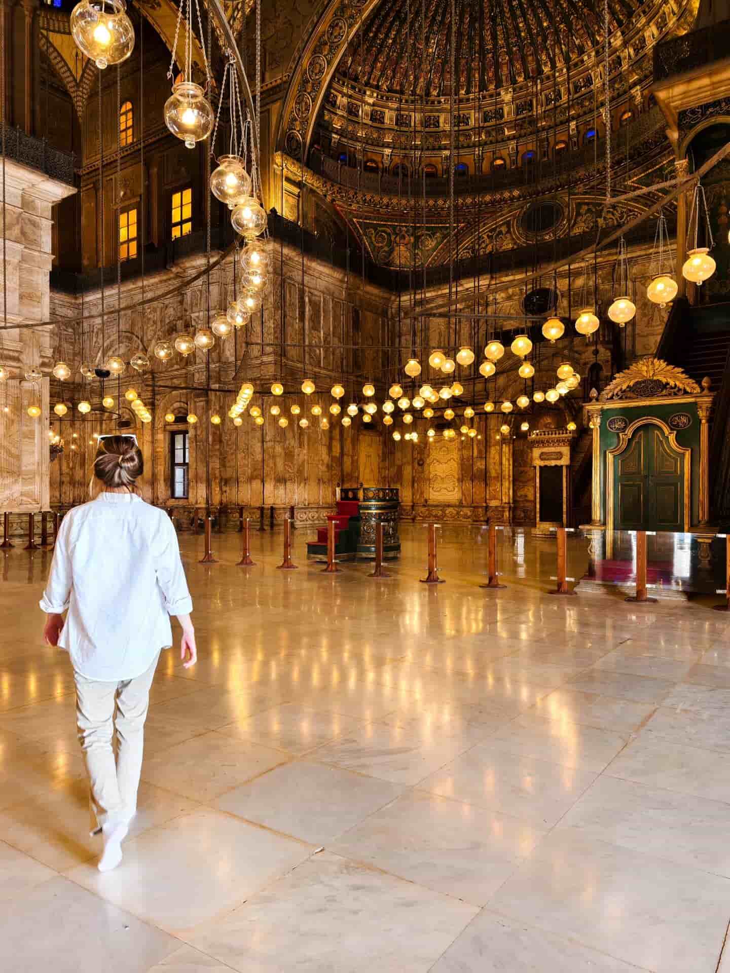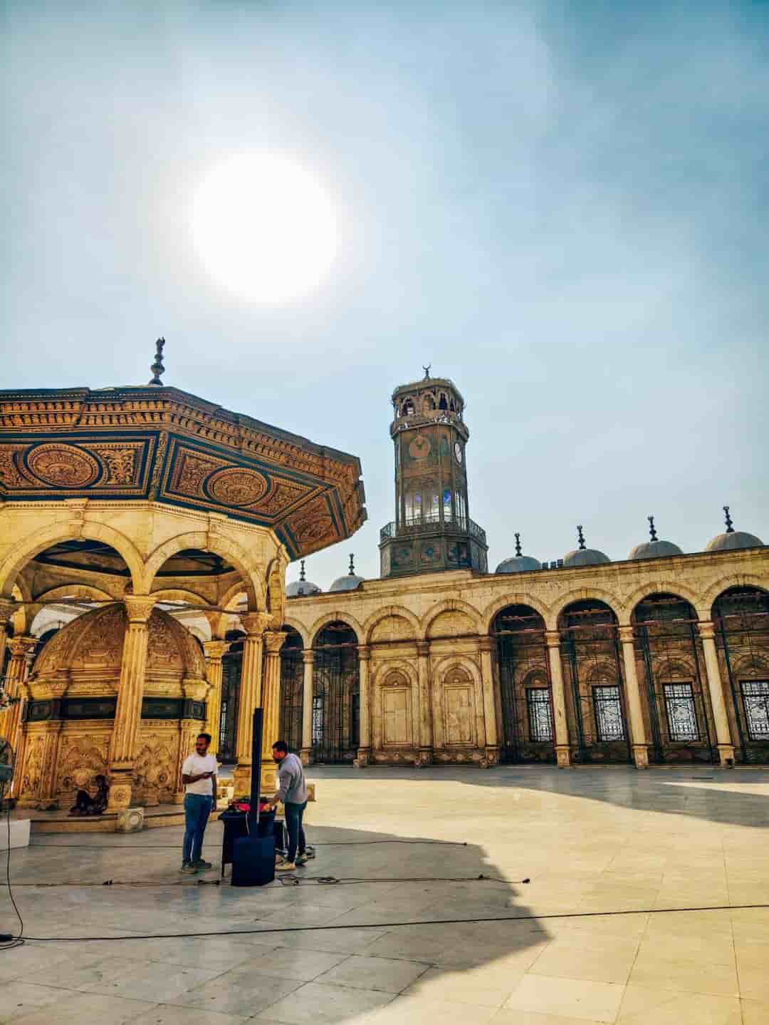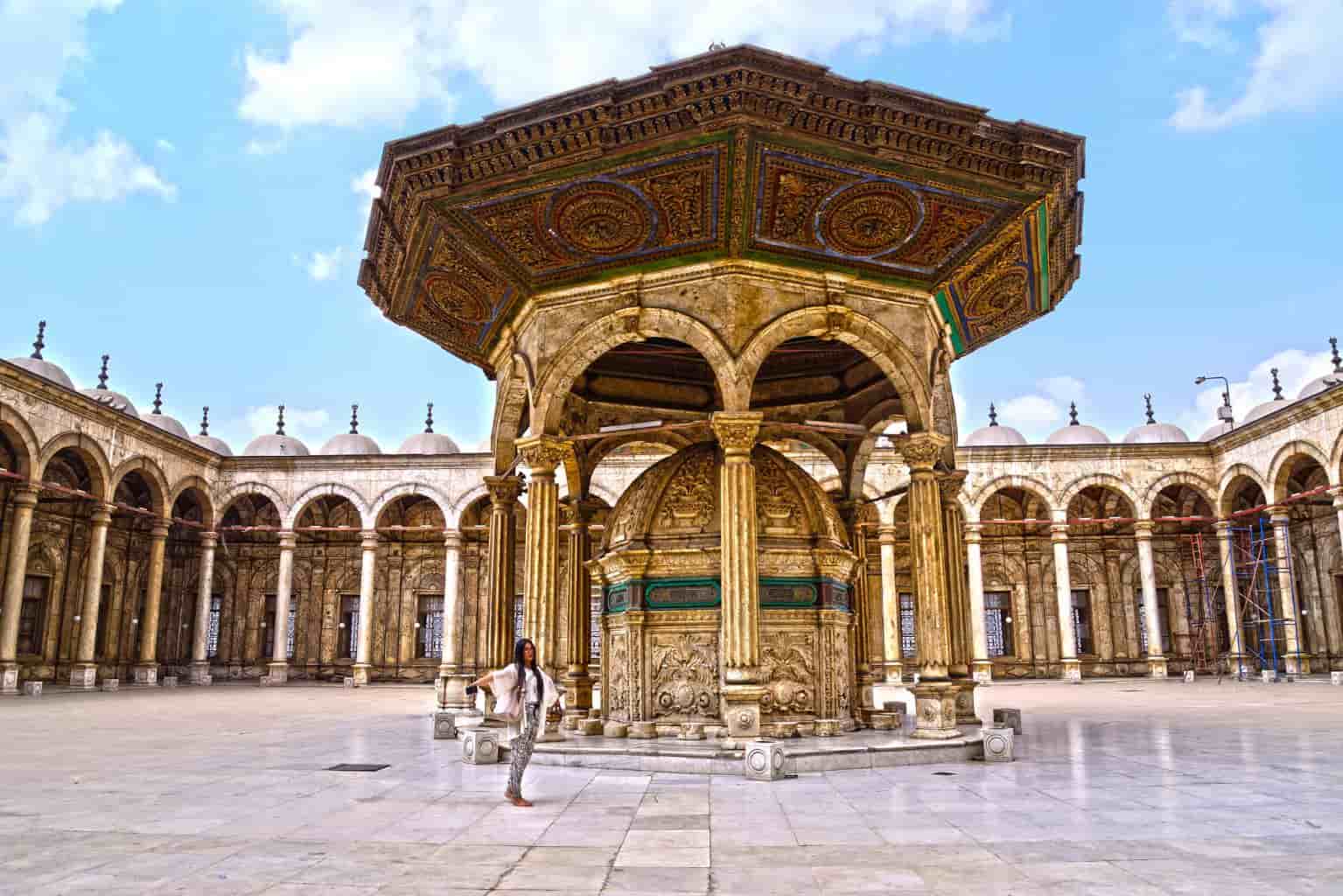 【阿里雪花石清真寺】:位于萨拉丁城堡内,全称叫穆罕默德·阿里清真寺位于开罗旧城萨拉丁城堡内。寺西南有一黄铜围栏,为奥斯曼帝国统治时期的埃及总督穆罕默德·阿里的坟墓。他于 1849 年卒后葬此,故清真寺以其名命之。寺内钟塔的吊钟是法国国王路易斯·菲利浦赠送的礼物。