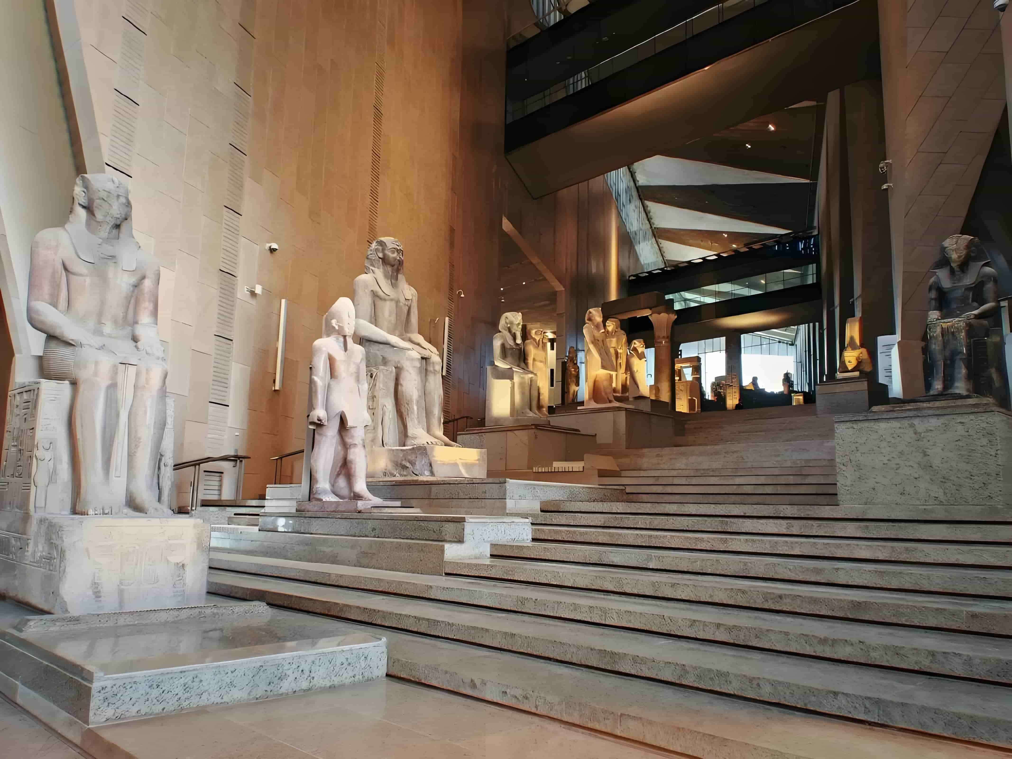 午餐后,前往参观众所期待的【大埃及博物馆(Grand Egyptian Museum)】(入内参观 目前已开放的 12 个展厅,不低于 2 小时),大埃及博物馆介绍:筹备近20 年、耗资 10 亿美金,已于近期对外开放 12 个展厅,它收拢了埃及不同博物馆里最顶尖的藏品,正式开展后,将向公众呈现 5 万多件文物,其中 3 万多件是首次对外展出。难怪官方说:大埃及博物馆是埃及给全世界的礼物,您可看到大厅中央的拉美西斯二世巨像,他是古埃及最重要的帝王之一,曾下令建造了著名的阿布辛贝神庙,每年在他的生日 2 月 21 日和加冕日10 月 21 日,清晨的第一缕阳光会穿过神庙深处的隧道,照射在拉美西斯二世雕像的脸上。 大埃及博物馆延续了这一设计,仿佛穿越时空,在三千年后为这位“太阳的宠儿“保留了这缕熟悉的阳光游览结束后安排晚餐并入住酒店休息。