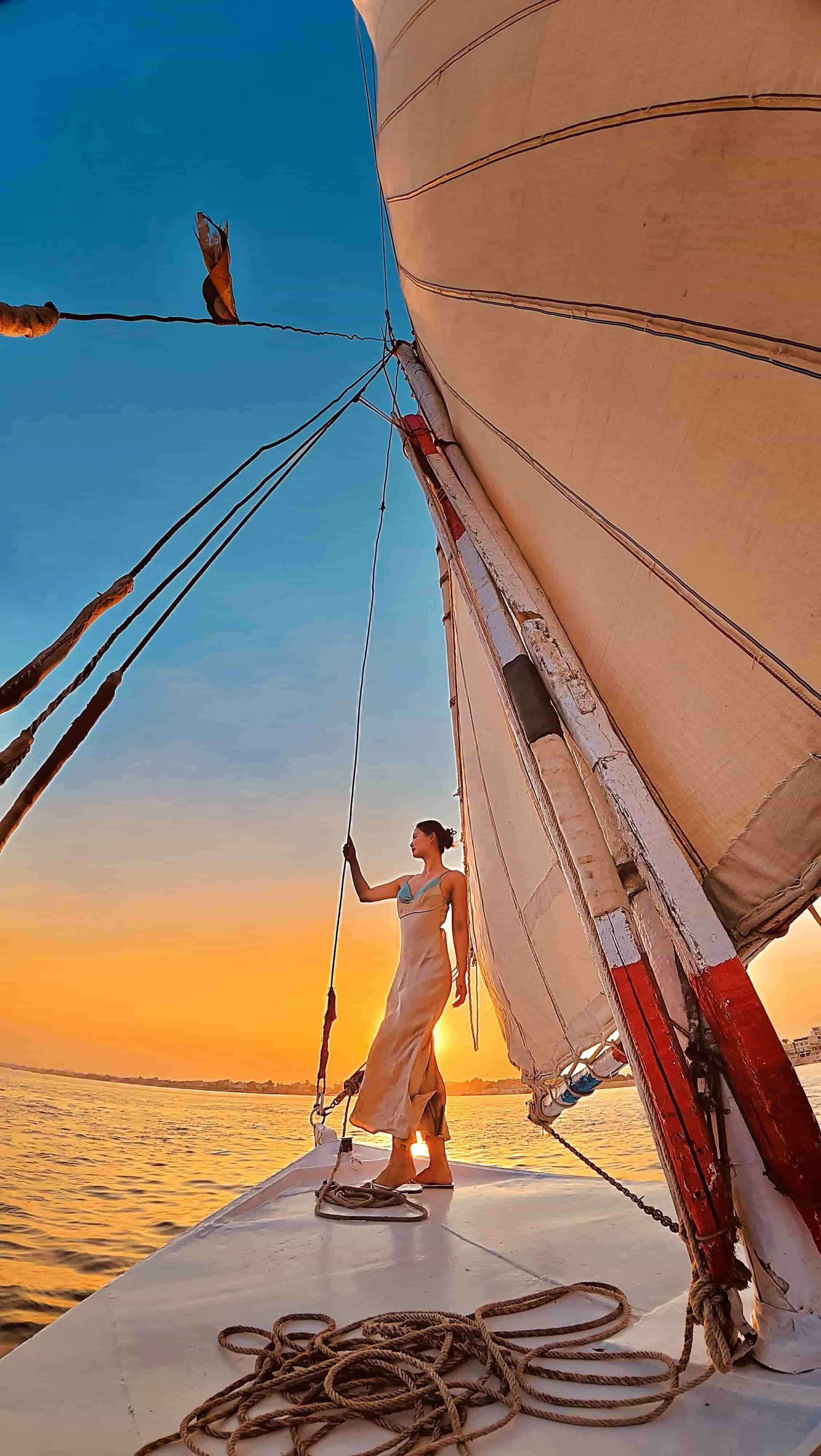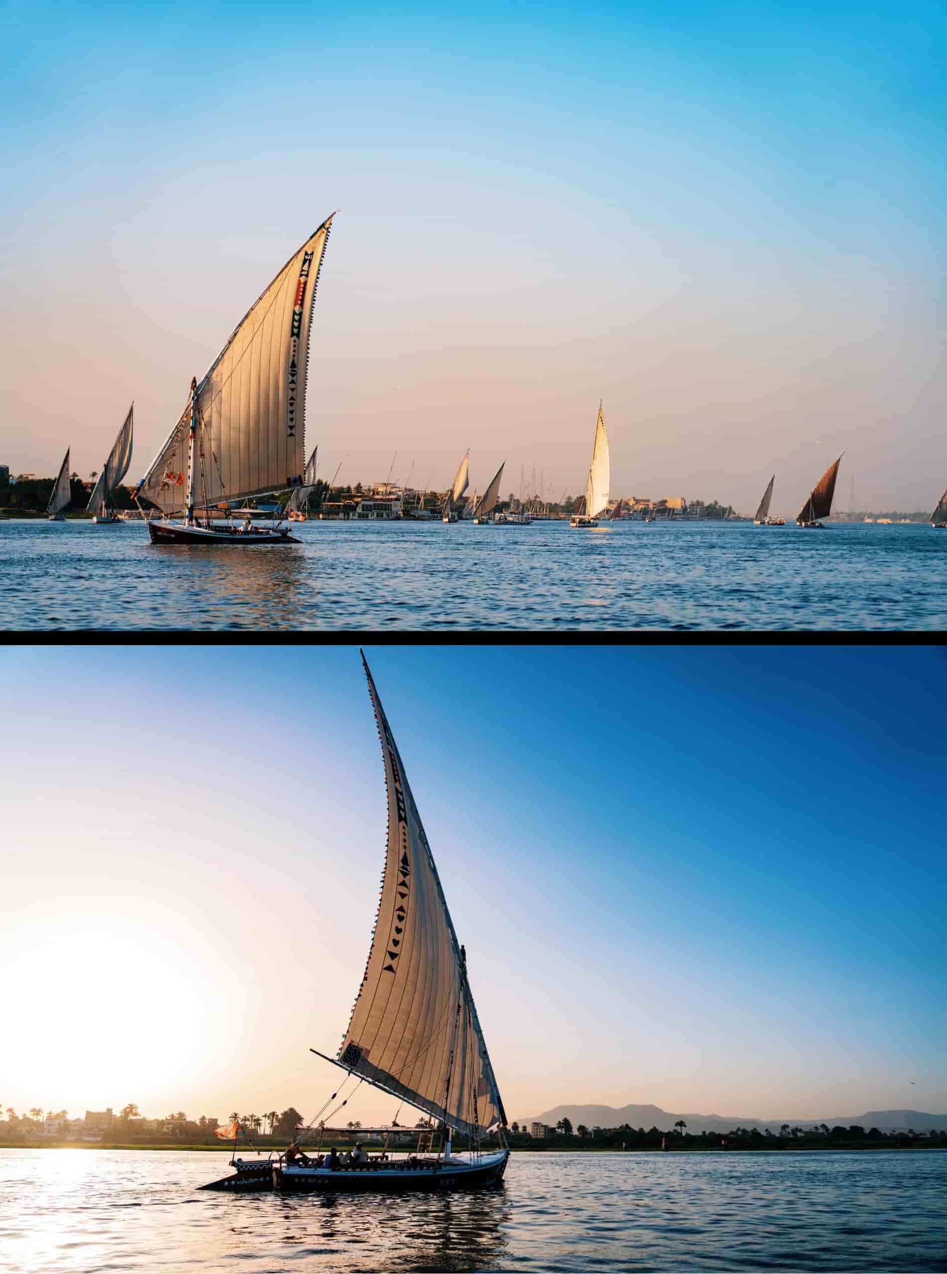 乘坐埃及最古老的交通方式之一的【单桅小帆船】(不低于 20 分钟)在尼罗河上畅游,这些阿拉伯式风帆船完全靠人工操纵,靠着自然的风力徐徐前进穿梭于河面,是非常环保的交通工具。尼罗河河水清澈,绿波荡漾,可以在船上欣赏沿途秀丽的风光。