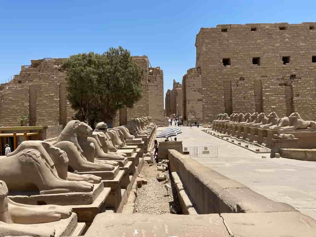 结束后乘车抵达后游览当今世界上最大的露天神庙,也是电影《尼罗河惨案》的拍摄地之一【卡尔纳克神庙】(入内,不低于 90 分钟):古代埃及底比斯阿蒙神庙,这里的阿蒙神庙也成为全国最大最富有的神庙。卡纳克神庙是埃及中王国时期及新王国时期首都底比斯的一部分。太阳神阿蒙神的崇拜中心,古埃及最大的神庙所在地。神庙内有大小 20 余座神殿、134 根巨型石柱、狮身公羊石像等古迹,气势宏伟,令人震撼。