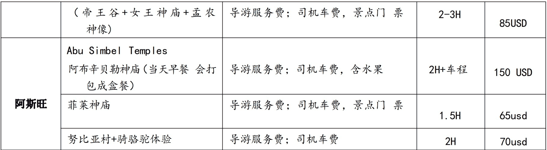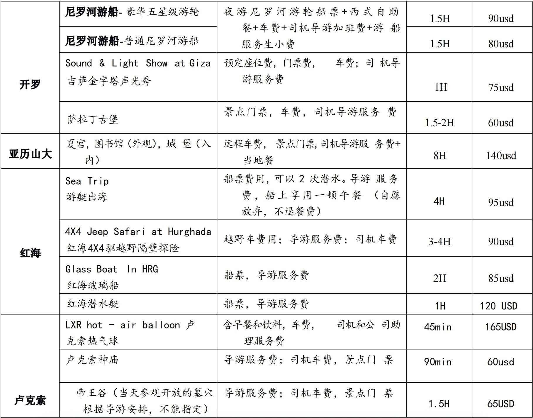 5. 空调旅游巴士(含接送机及游览期间)例:10 人,埃及 12-16 座车;根据具体人数而定