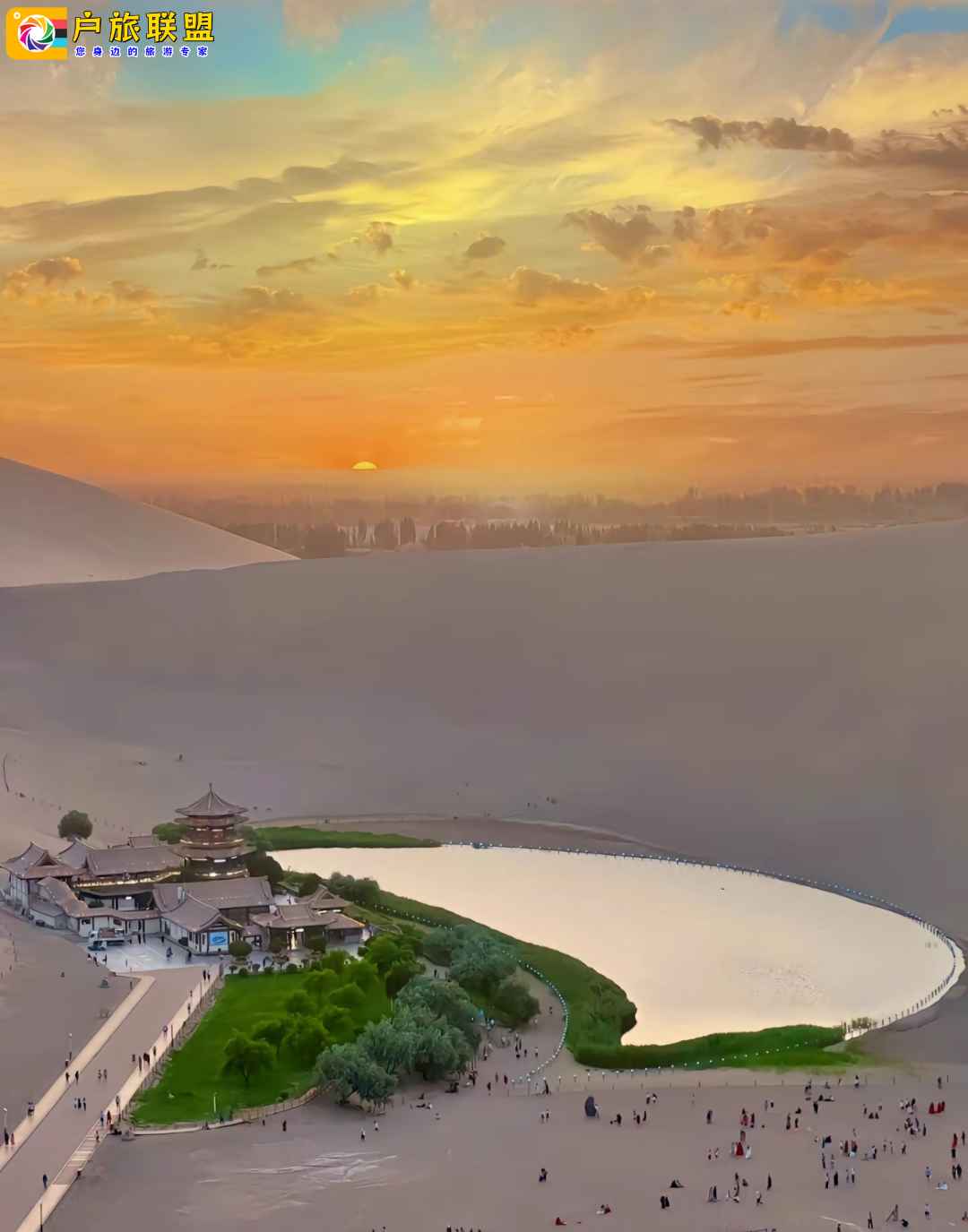 鸣沙山环抱着月牙泉,如同慈母守护着沉睡的婴儿。这弯清泉,千年来在茫茫沙海中熠熠生辉,是大自然鬼斧神工的杰作,也是敦煌的象征。