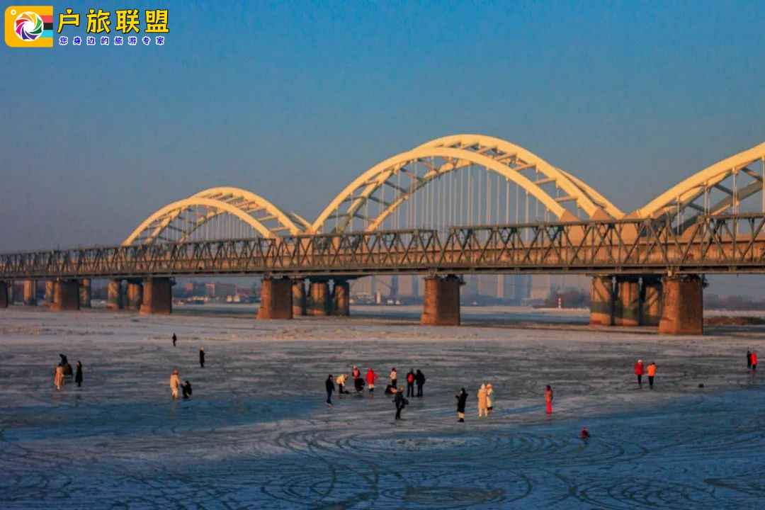漫步在松花江畔,只见江面早已被冰雪覆盖,形成了一片广阔的冰原。