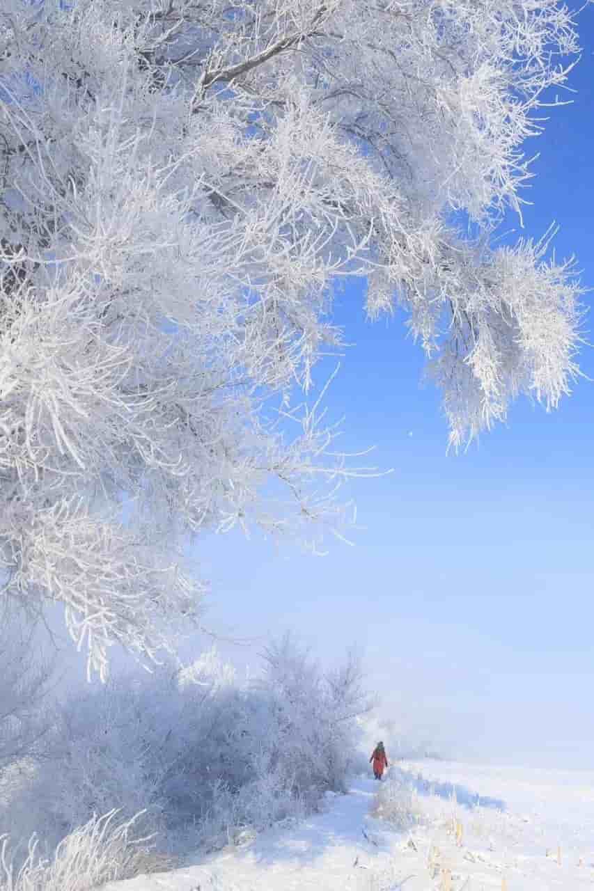 要说起冬季哪里的雾凇最美,那当然是吉林雾凇岛!冬季的雾凇岛早已银装素裹,枝头上镶着朵朵银花,美得如梦似幻。