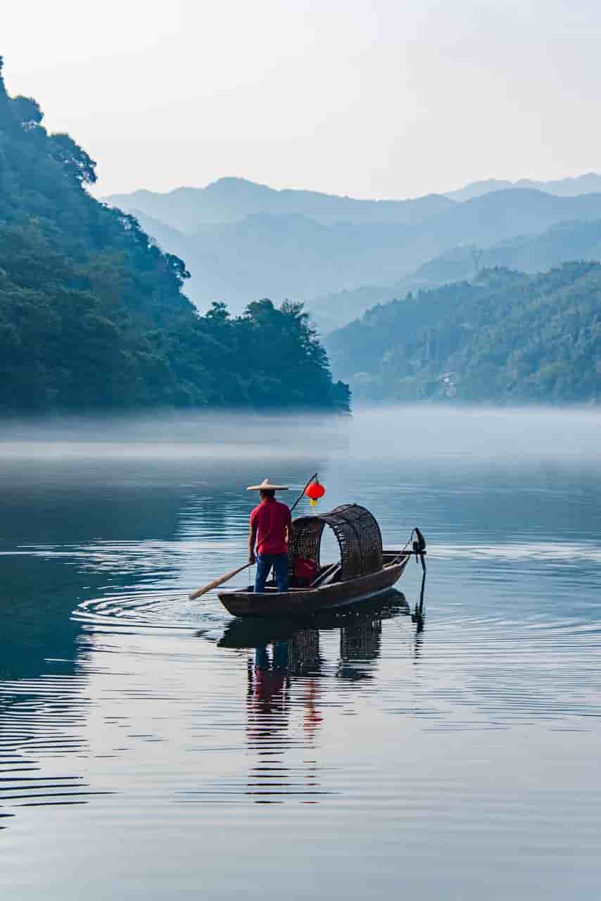 无数摄影发烧友从凌晨4点钟就开始等待那渔歌颂晨的美景,渔人坐着乌篷船在云雾中穿梭,然后往江中撒出渔网,此情此景被无数的咔擦声定格住了,美丽至极。