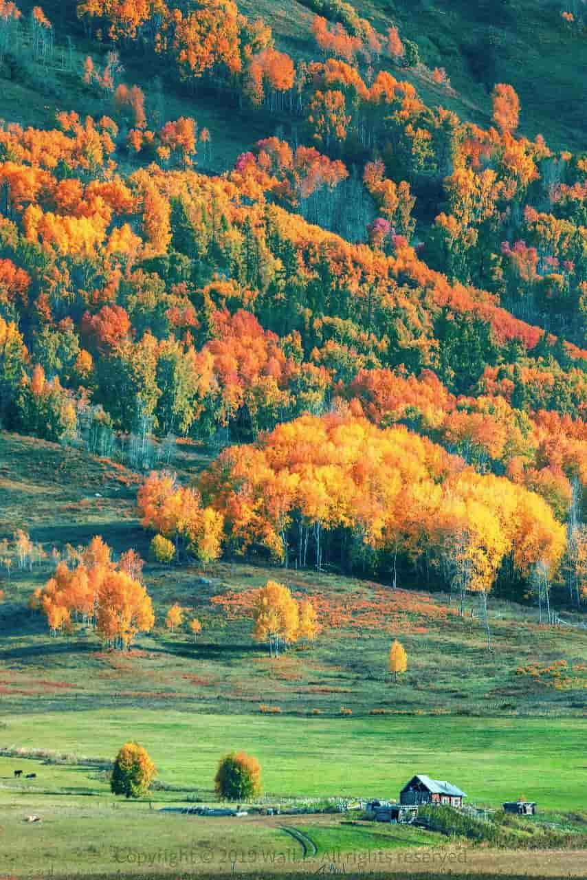 喀纳斯的秋色是国内十大秋色之首,一到秋季,它就会变得五彩斑斓,红的黄的蓝的绿的,美得淋漓尽致。