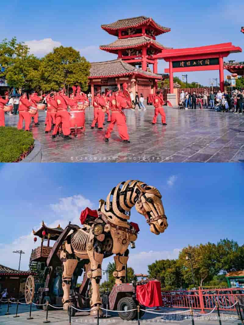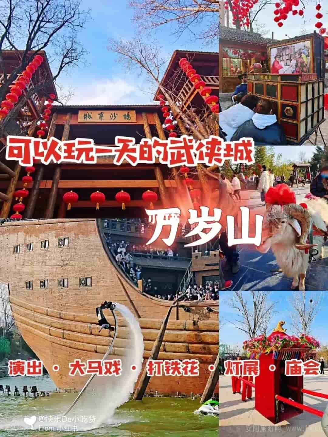 后赴“开封人的待客厅”、“外地游客的首选地”、“开封市的新名片”、“文化旅游新地标”——【小宋城】;可自由品尝开封各色、美味、低廉小吃。游览国家AAAA级风景区【万岁山武侠城】(门票80元自理).观民俗村看民俗手工艺品制作,赏万岁寺感皇家寺院之辉煌,游古城墙人防工事,体验大宋武侠之风,也可自由观赏景区内大宋文化影视剧:武松醉打蒋门神、野猪林、劫镖、十字坡、拜师学艺、七侠五义、武林推盟、比武招亲、飞云浦、水上飞人,观看大型实景演《三打祝家庄》等。每天上百场精彩演出。晚覌赏《打铁花》非遗演出。