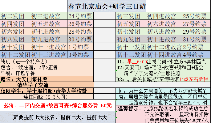 8.因限流政策景区门票约不上则改为同等价值的景区,报名此行程即认同此条款,敬请知晓。