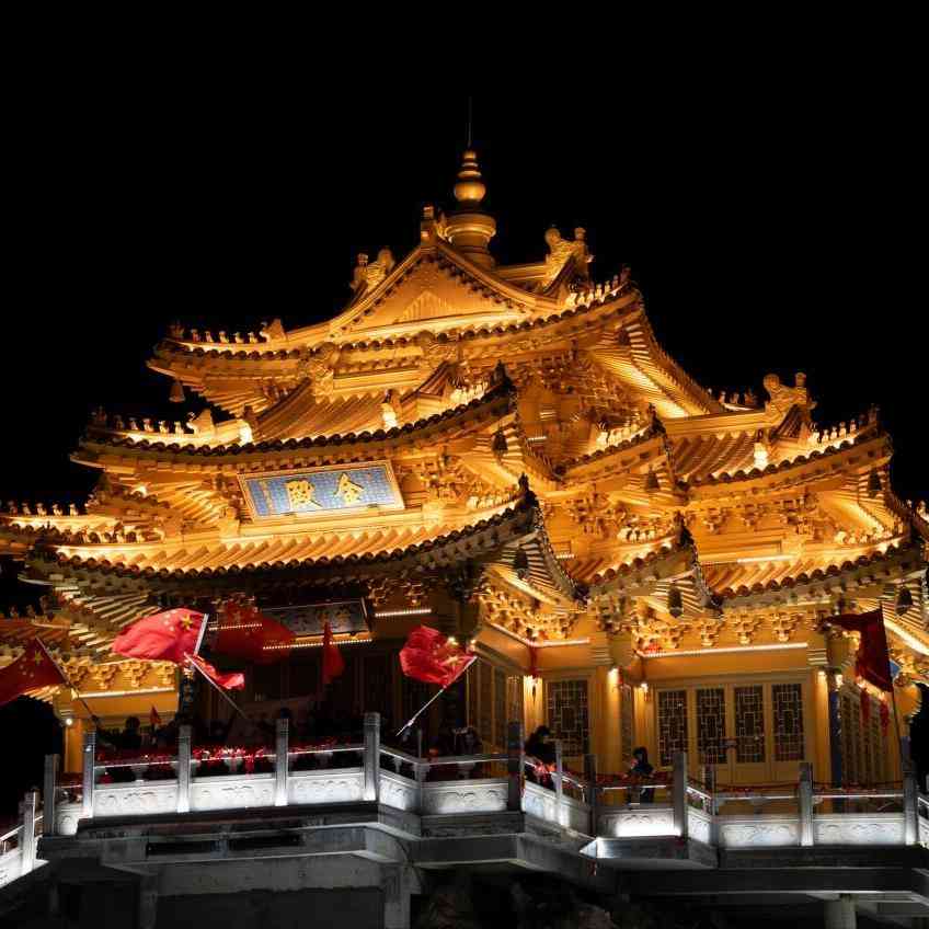 金顶夜景亮灯时间和客流情况,适时调整游览顺序。