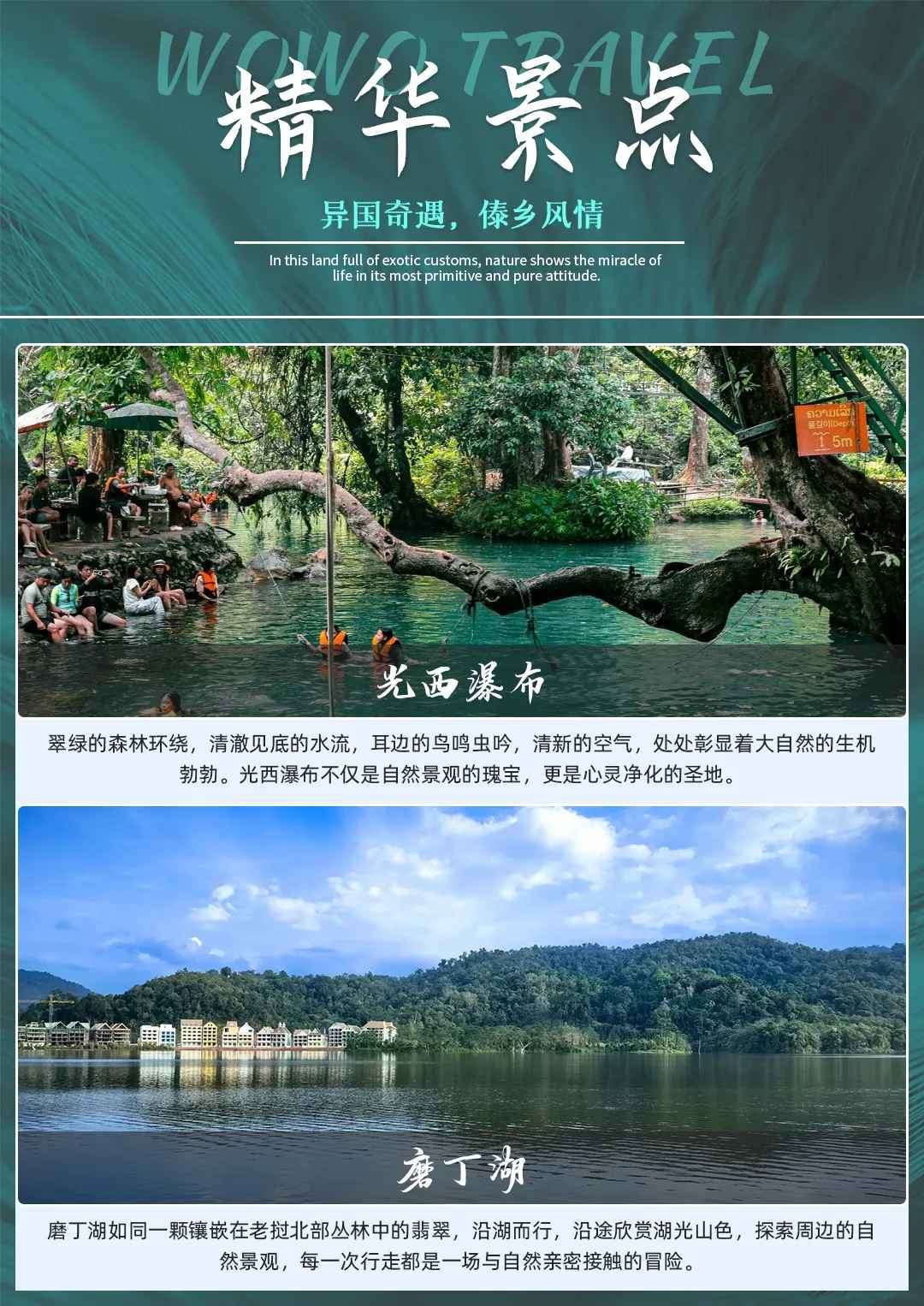 乘车前往老挝磨丁经济特区黄金城,前往游览【磨丁湖风景区】,磨丁湖位于磨丁经济特区的中心地带, 面积 3000 余亩,东临总佛寺,西靠寮国古城,北与喃通河风景区隔山相望,是磨丁未来发展旅游文化区的中央绿轴。