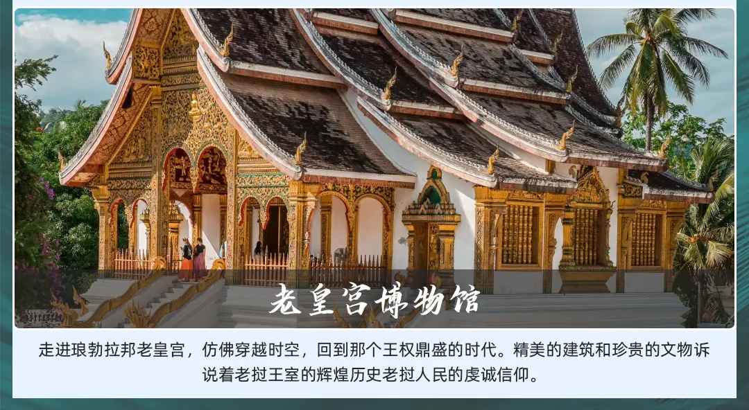 酒店享用早餐后,后游览【大皇宫博物馆】皇宫博物馆1904年建造,老挝西萨旺冯国王的皇宫,参观国王的议政厅、起居室、餐厅、娱乐室等,重点参拜琅勃拉邦名称的拉邦佛(由高棉国王赠送的勃拉邦金佛,老挝镇国之宝)。