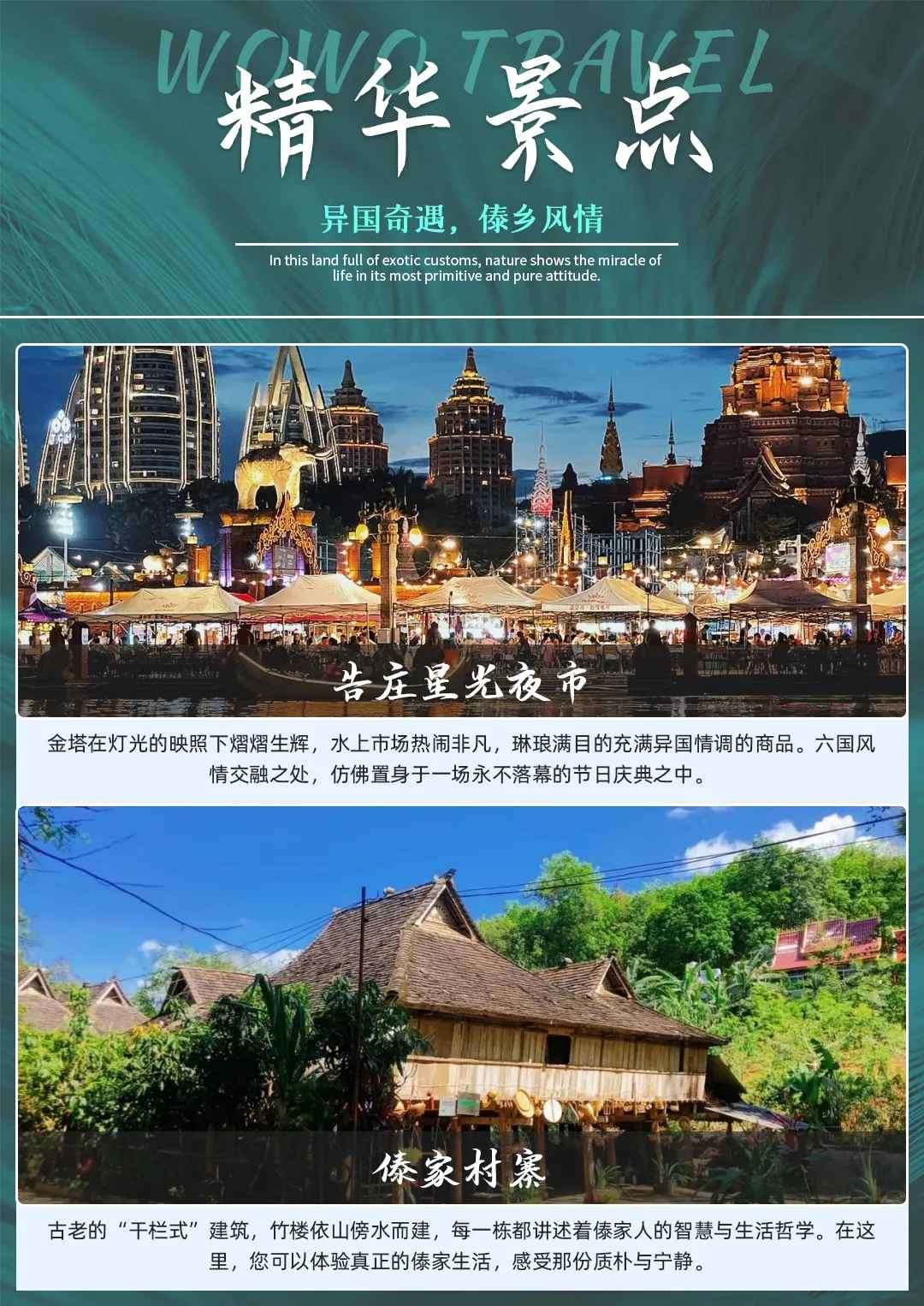 乘动车(参考车次C386/17:08-18:15北京时间)返回西双版纳游览最美夜市【告庄星光夜市】,星光夜市是一个让人来了就不想离开的地方,每个角落都充满了“激情”和“诱惑”,每一处都显露出了告庄西双景繁华和人气的旺盛。这里更是湄公河畔最美丽的夜市,也是大金三角最具有规模、最具有特色的夜市。乘车前往酒店休息