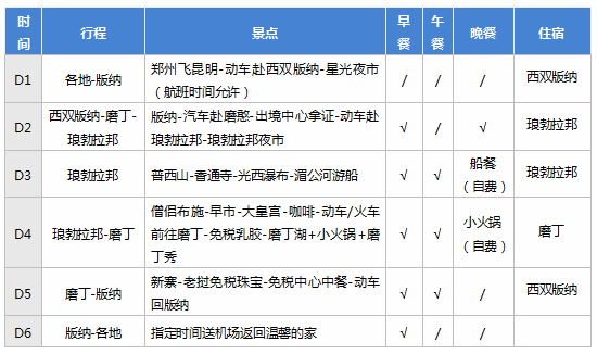 出发地-抵达西双版纳 住宿:西双版纳