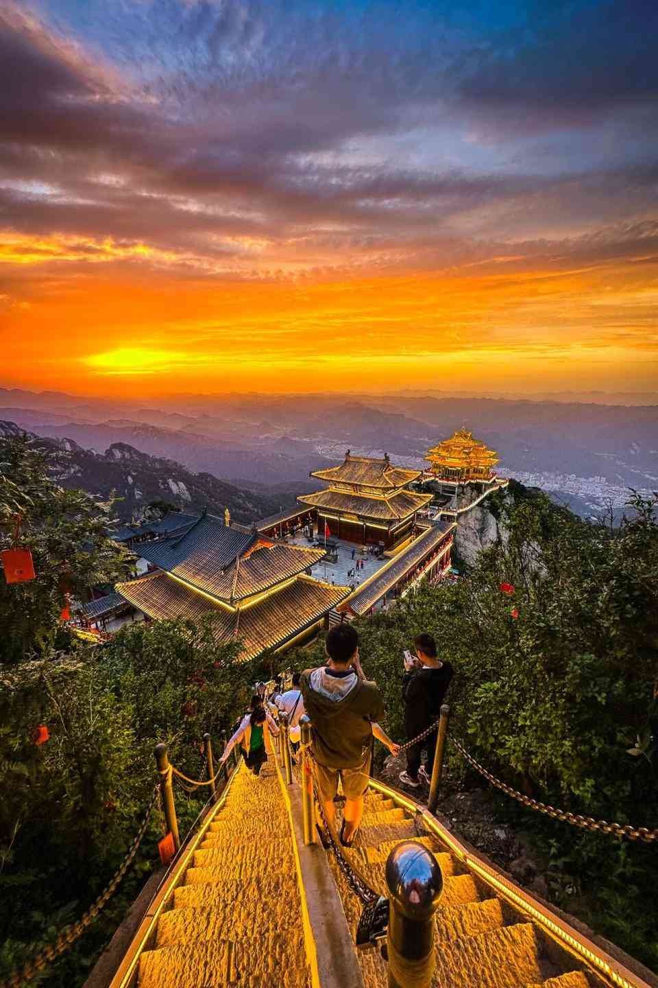 金顶夜景亮灯时间和客流情况,适时调整游览顺序。