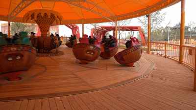 一飞冲天:你将被瞬间弹射到40多米的高空,然后忽然下坠,如果不害怕,那你可以进入大饱眼福的“游戏副本”了,请张开双眼,尽情俯瞰极具魅力的方特国色春秋吧!