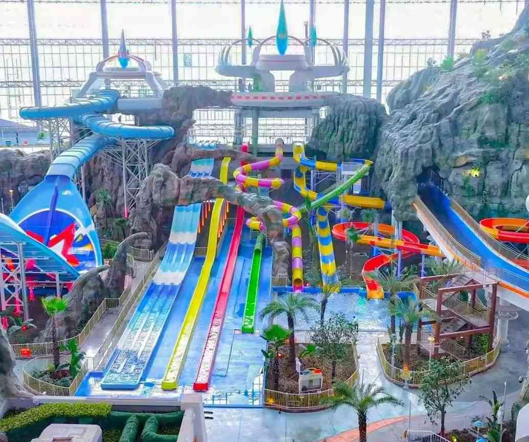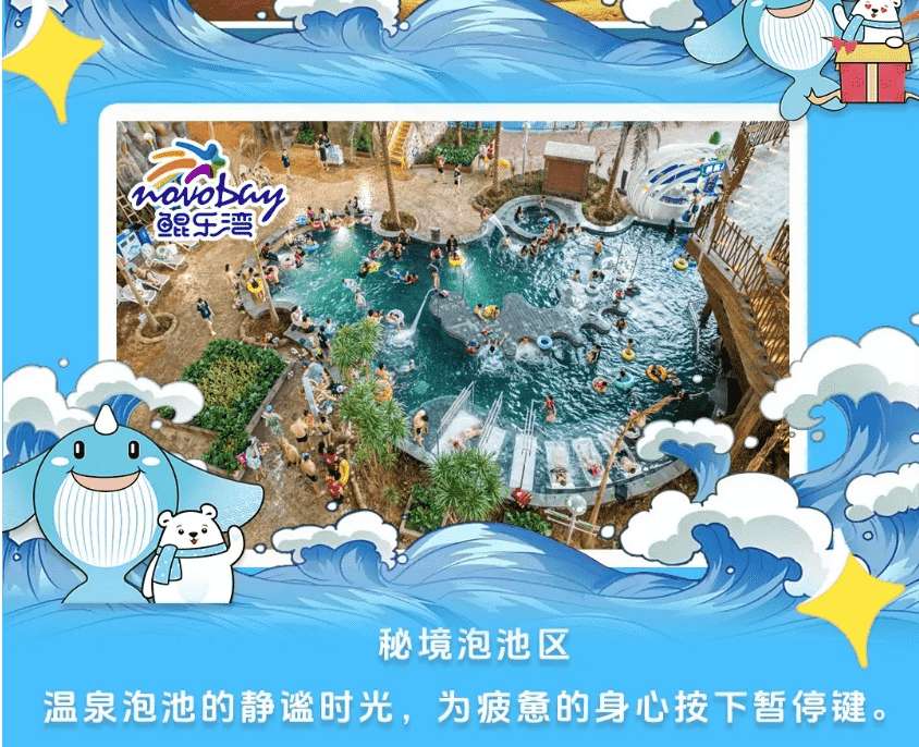C区绿境丛林:翻江倒海(封闭滑梯、锯齿碗滑梯、魔法球滑梯、游蛇滑梯4套)、敞开螺旋滑道A(悬浮山滑梯)、敞开螺旋滑道B(漩涡滑梯)、雪橇滑道(丛林飞越)、泡池区(秘境泡池区、岩洞泡池区、叠泉泡池区、休闲泡池区、主题水疗池区、儿童泡池区6个主题泡池区)。