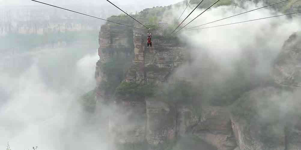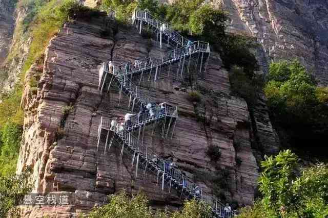 该处悬崖难以攀登,景区开发时予以建设,栈道分为两段,下段高50米,138个踏步;上段高60米,186级踏步。从绝壁下盘旋而上,下连峰岭,上接云天,行走其上,心惊胆颤,毛发亦寒。河南著名诗人王怀让到此,触景生情,不胜概叹,即兴作《云梯栈道行吟》,“百级千级空中悬,我从此处上青天,步步走在白云里,暮然回首是人间”。 |