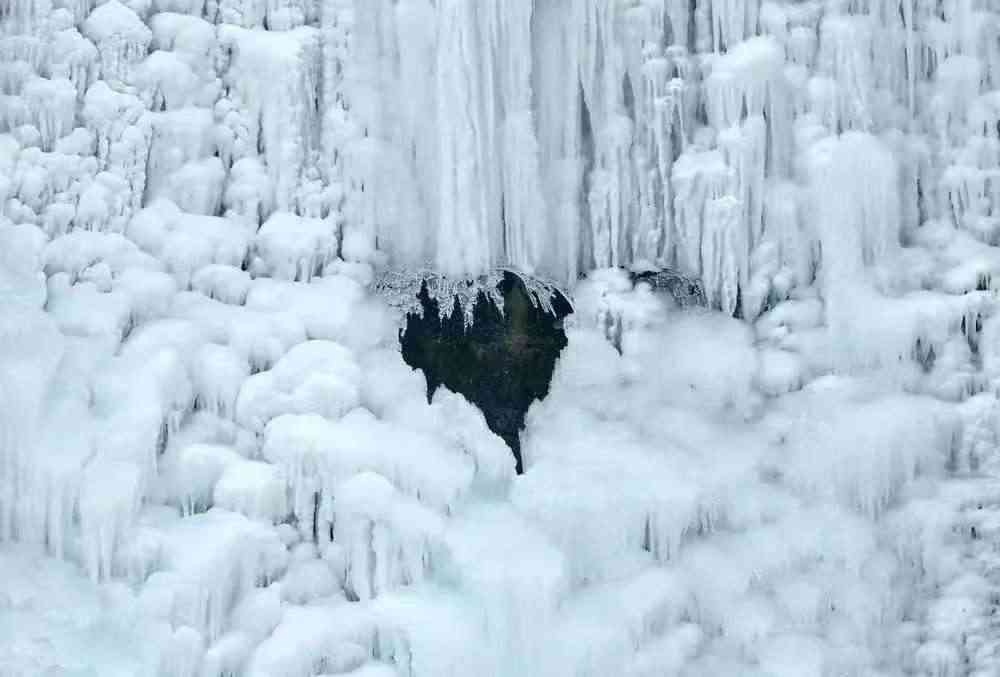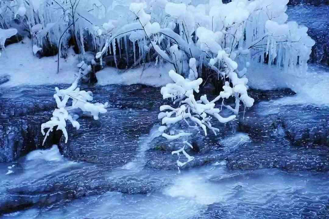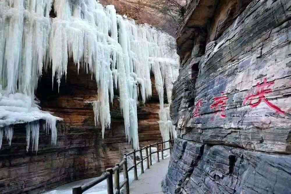 太行大峡谷的溪流、飞瀑、草丛等景观或凝固成冰,或被冰雪覆盖,幻化成白色的“童话仙境”,引人入胜!