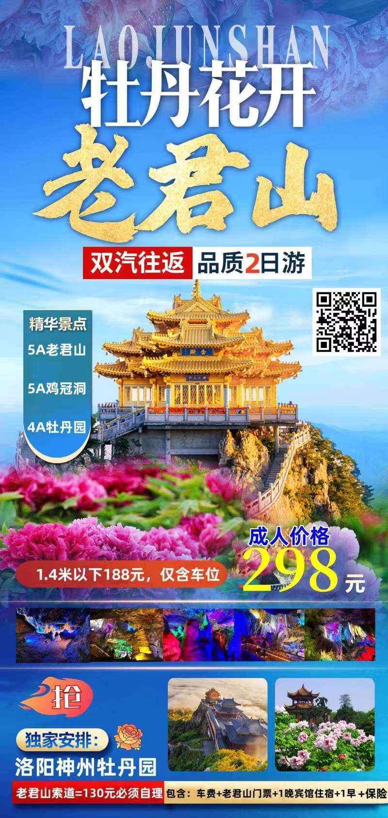 观老君山金鼎夜景.游鸡冠山亿年溶洞.赏洛阳神州牡丹
