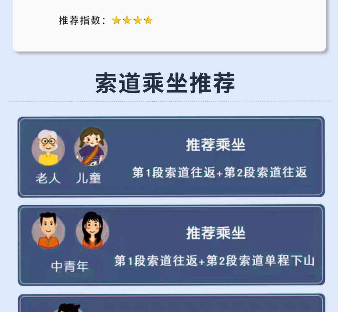 2、索道:一级索道130元(自理必消,1.4以下儿童免费)