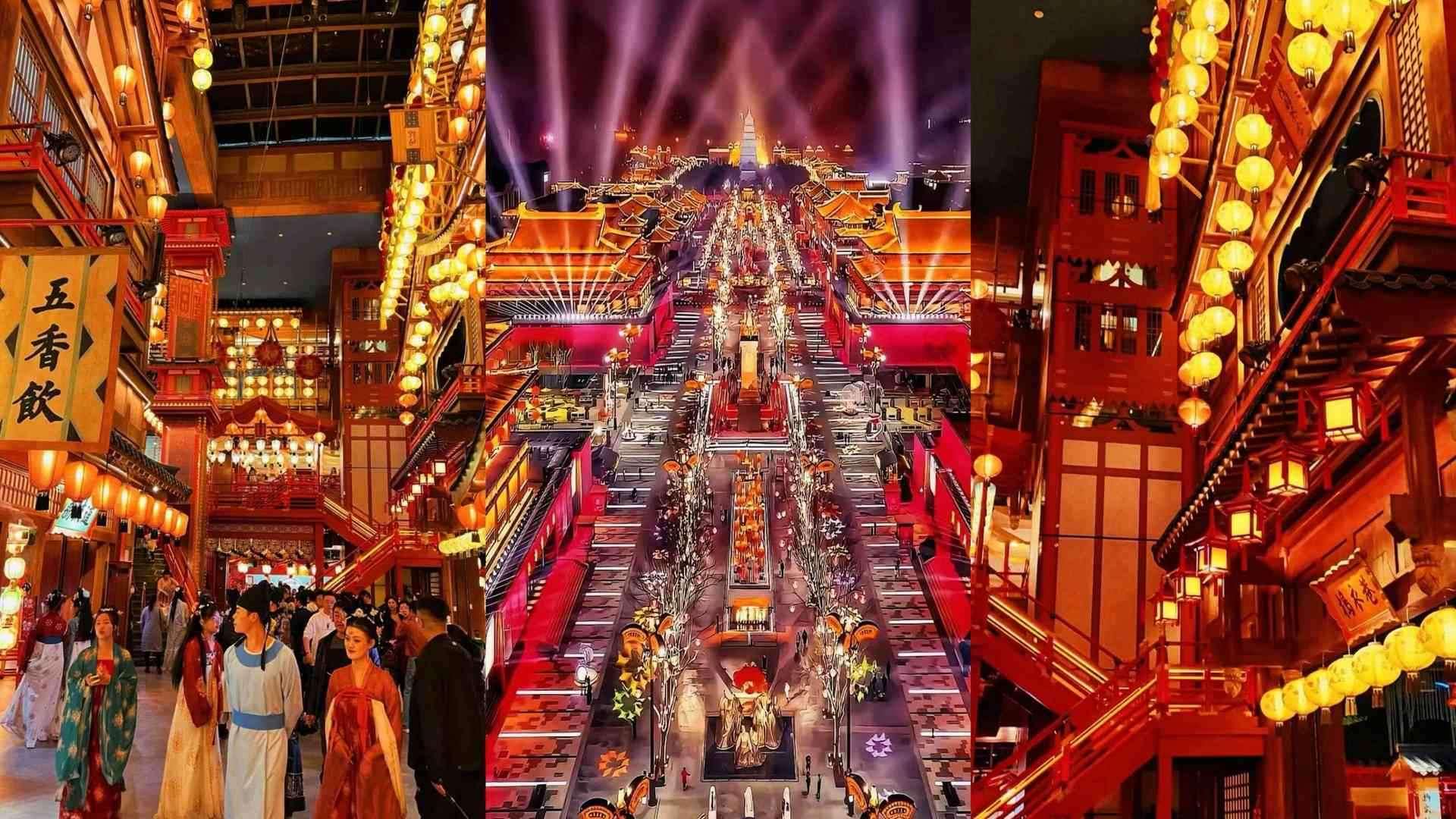 后欣赏大型歌舞演出《西安千古情》(门票298元,赠送,景区30元维护费必消,赠送项目不去不退费)。大型歌舞《西安千古情》以一位华裔少女回国寻根的故事为主线,开启一次寻找民族记忆之旅,分为《文明之光》《灞河之洲》《大禹治水》《大唐盛世》《丝绸之路》等场。《西安千古情》不是简单地表达历史,而是用独特的艺术表现手法,撷取了西安文化的片段,为观众奉献出一台喜闻乐见的作品。这里有灞柳依依间的浪漫诗情,这里有大唐长安的盛世华章,这里有万里扬沙的丝路传奇,这里有复兴之路的铮铮强音。以虚实结合的表现手法让打破了舞台与观众区域的界限,让观众沉浸式地感受西安过去和正在发生的史诗巨变:繁华的大唐盛世商旅往来,络绎不绝,歌舞升平,欣欣向荣;绵延的丝绸之路上,黄沙滚滚,驼铃悠悠,人喊马嘶;新时代的西安以“一带一路”为契机,正以大气、开放的姿态步入中华民族伟大复兴的新时代。