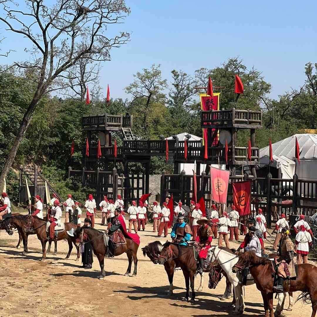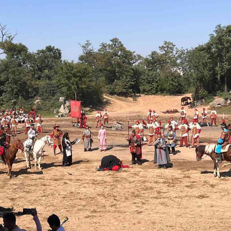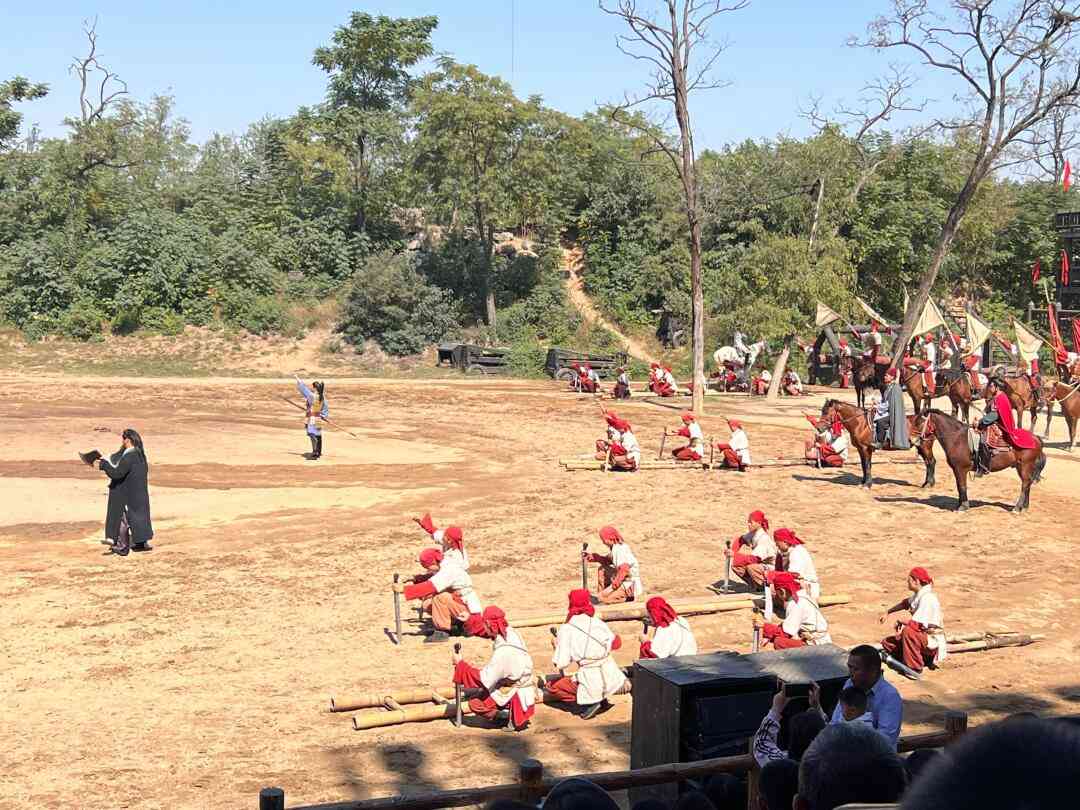 早指定时间地点乘车赴八朝古都【开封】,抵达后游览国家AAAA级风景区【万岁山武侠城】(门票自理),观民俗村看民俗手工艺品制作,赏万岁寺感皇家寺院之辉煌,游古城墙人防工事,体验大宋武侠之风,也可自由观赏景区内大宋文化影视剧:武松醉打蒋门神、野猪林、十字坡、拜师学艺、七侠五义、武林推盟、比武招亲、飞云浦、风雪山神庙,观看大型实景马战演出《三打祝家庄》等。每天上百场精彩演出。晚上观看《神舟传奇》演出,覌看《打铁花》非遗演出,铁水腾空一瞬间,漫天银花落。
