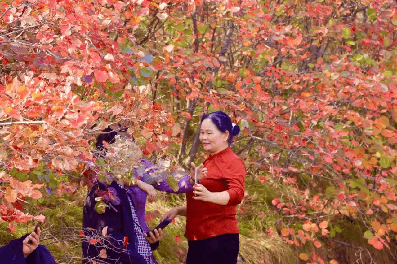 团团簇簇的红叶点缀了整个山坡